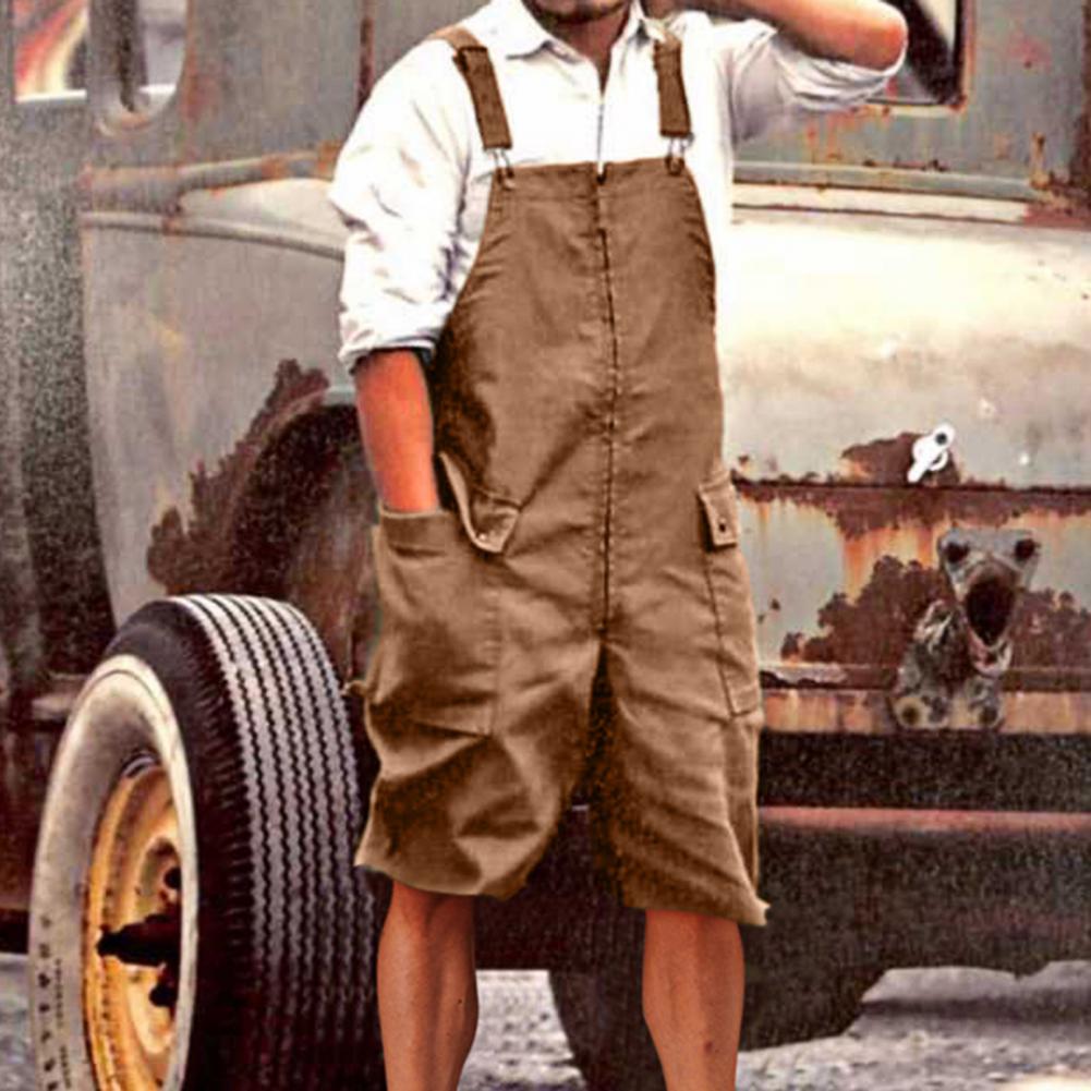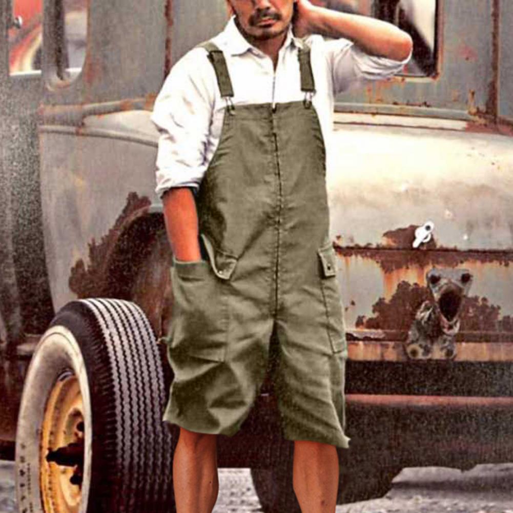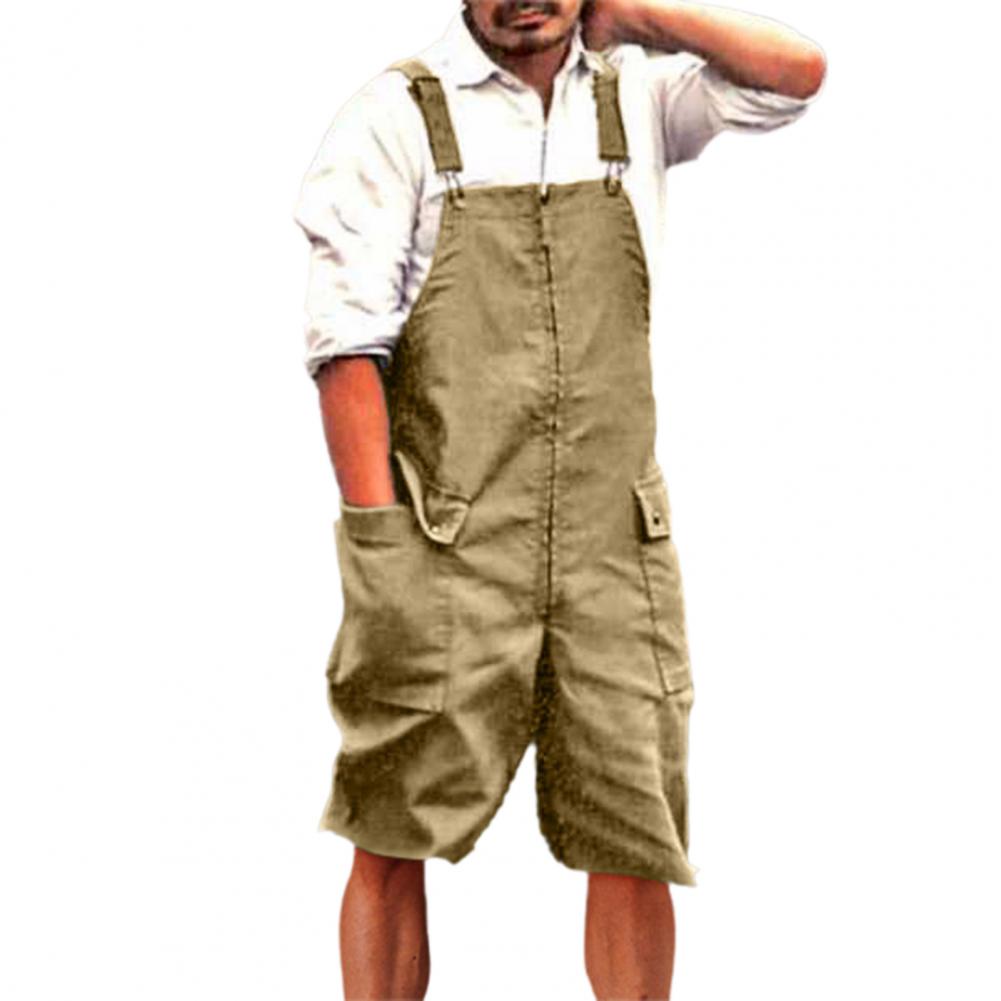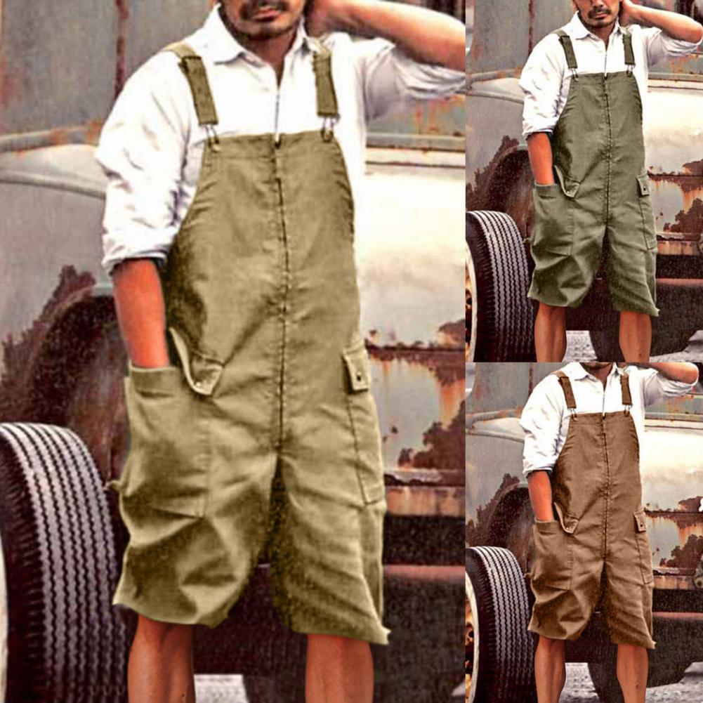 С использованием однотонного дизайна и плечевого ремня, мужской комбинезон Повседневный и простой. Мужской комбинезон с двумя карманами, который можно носить с собой каждый день.
