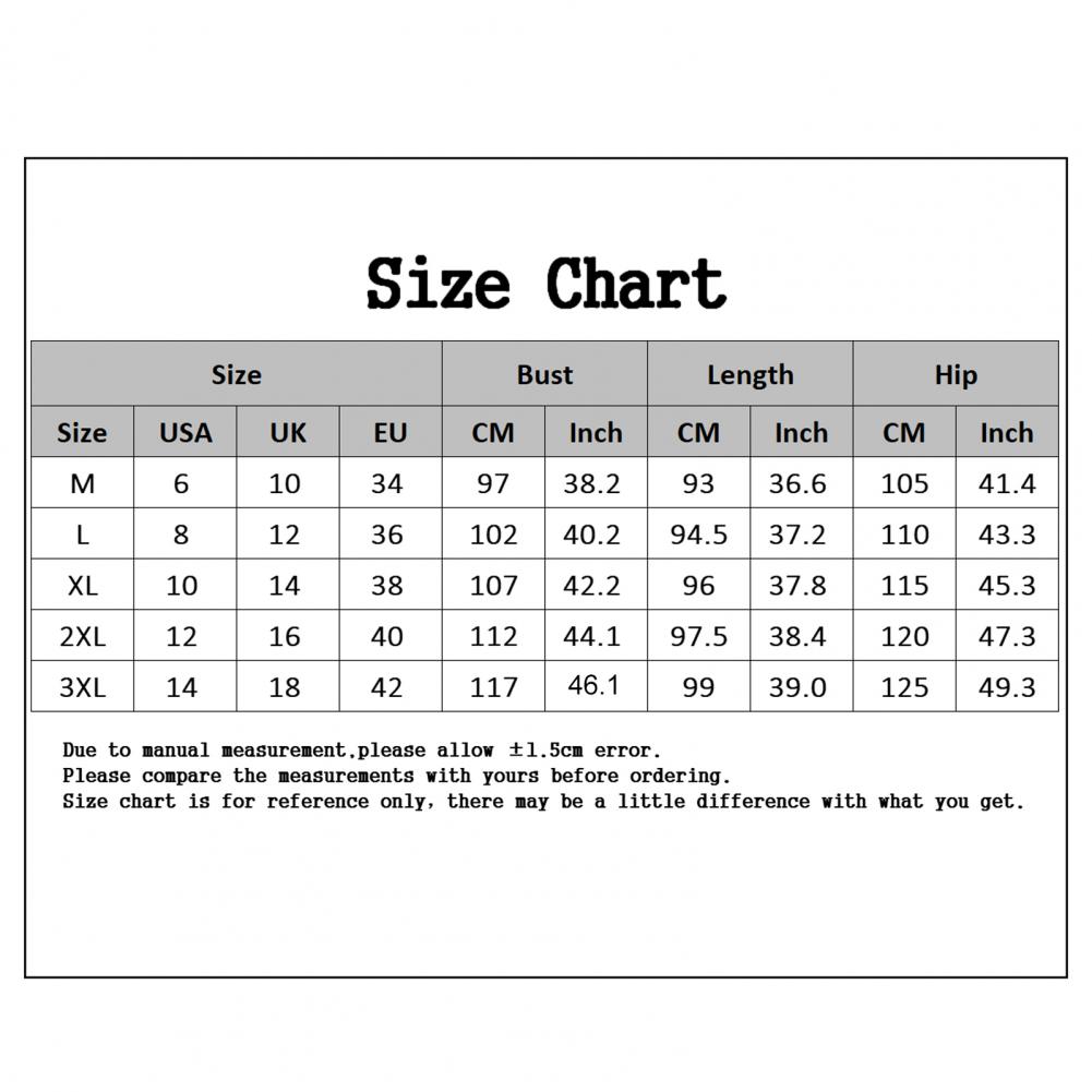 [Наш Размер 3XL] Длина: 99 см/39 дюймов, обхват груди: 117 см/46,1 дюйма, обхват бедер: 125 см/49,2 дюйма (приблизительно)