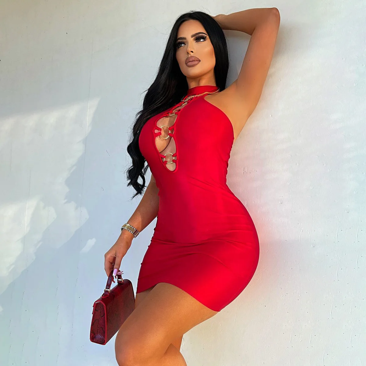 Женское пикантное однотонное облегающее платье в рубчик с V-образным вырезом