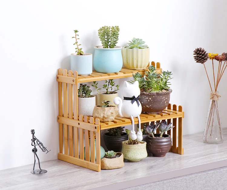 Bamboo Flower Display Stand Plants Pots Rack 1/2 Tier Folding Shelving Home Office Desktop Organizer Storage Shelves Rack