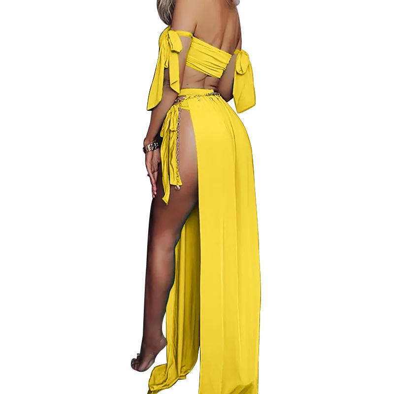 Женский костюм, сексуальный бандажный комплект на бретелях, укороченный топ, бандажные юбки для пляжа, комплект из двух предметов, 2021летняя юбка с разрезом и топ-труба