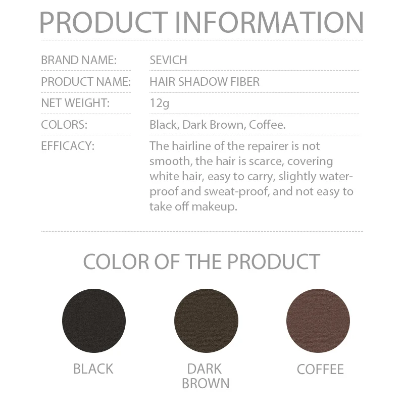 Sevich 12 г Тени для волос fiberuse для консилера корня, маленький и светильник с Порошковым слоем, легко носить с собой и использовать. Подходит для всех мест и качества волос.