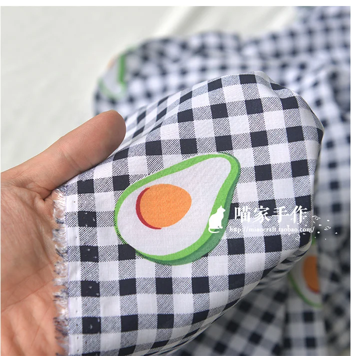 Клетчатая хлопковая ткань с авокадо и ананасами