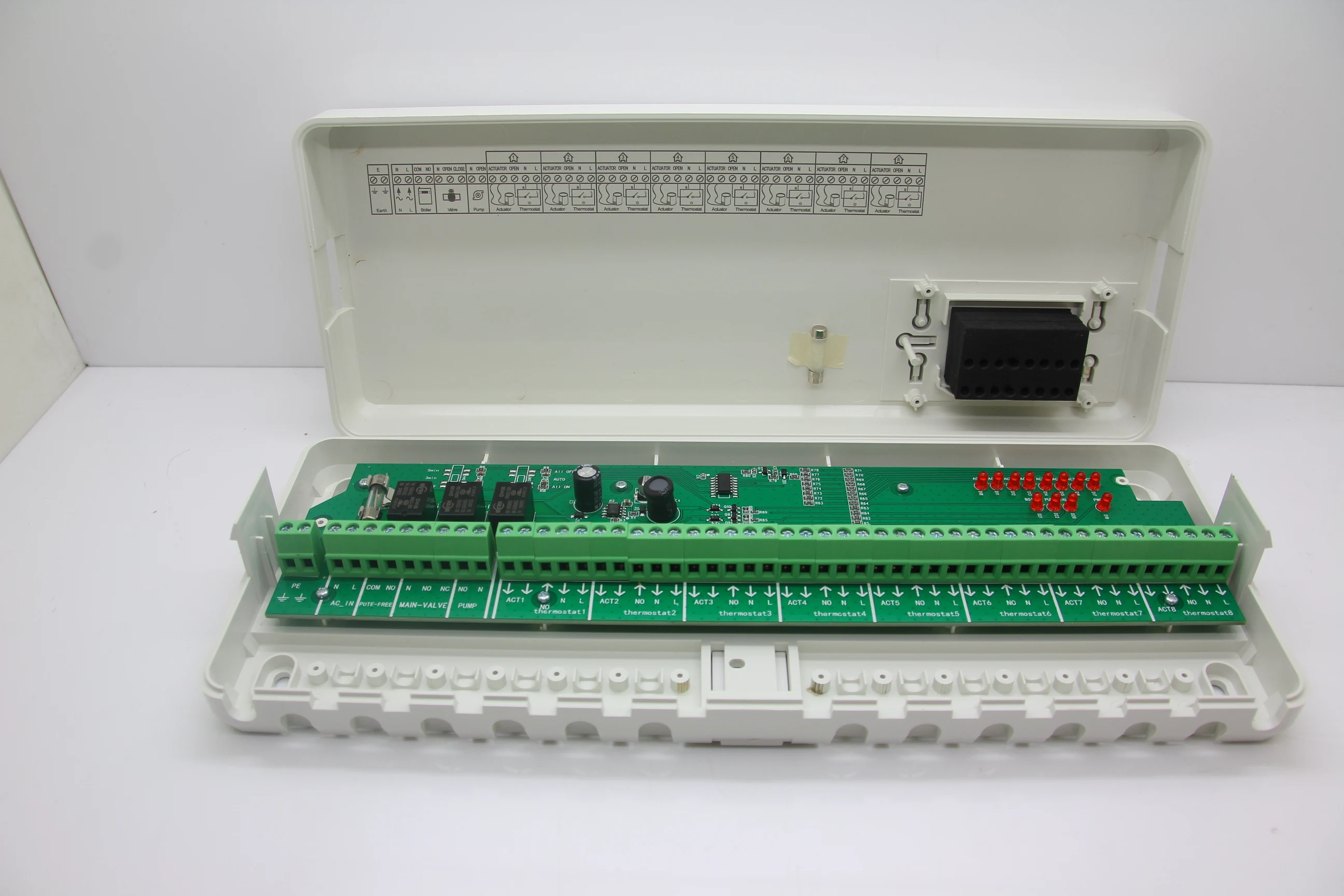 Этот контроллер концентратора используется в системе водяного теплого пола. IIt содержит выходы для переключения тепловых приводов, котлов, насоса и смесительного клапана.