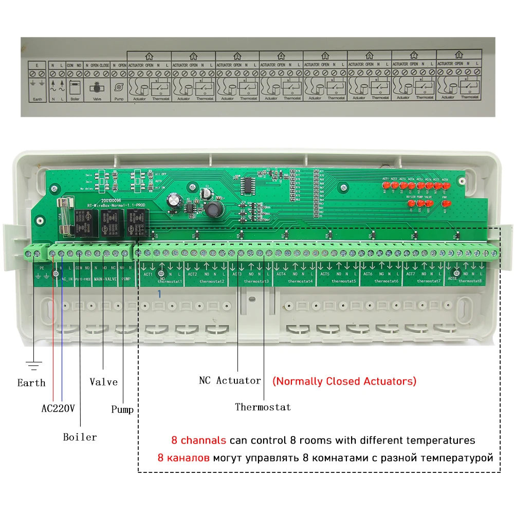 1. Из-за обновления продукта, этот контроллер ступицы используется только для подключения нормально закрытых (NC) электрических тепловых приводов!