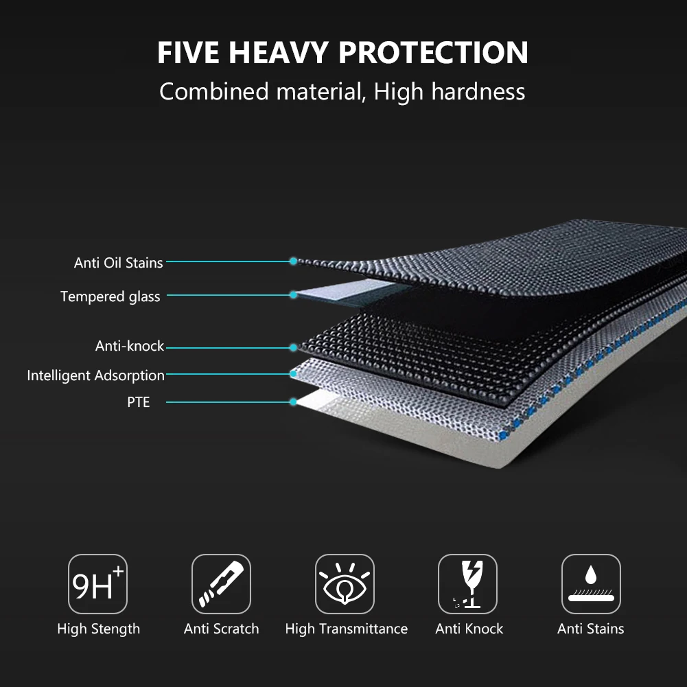 Материал: закаленное стекло Толщина: 0,3 мм Край: 2.5D изогнутый Твердость: 9H Прозрачность: 99.9% HD