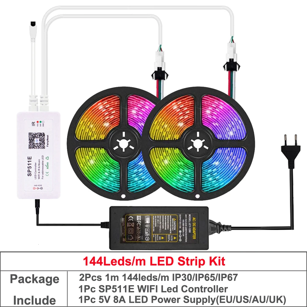 2 шт. 1 м 144 светодиодов/м Белый/Черный PCB IP30/IP65/IP67