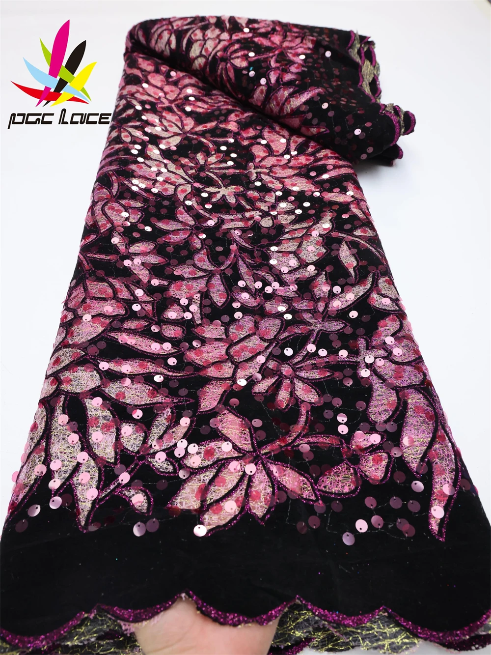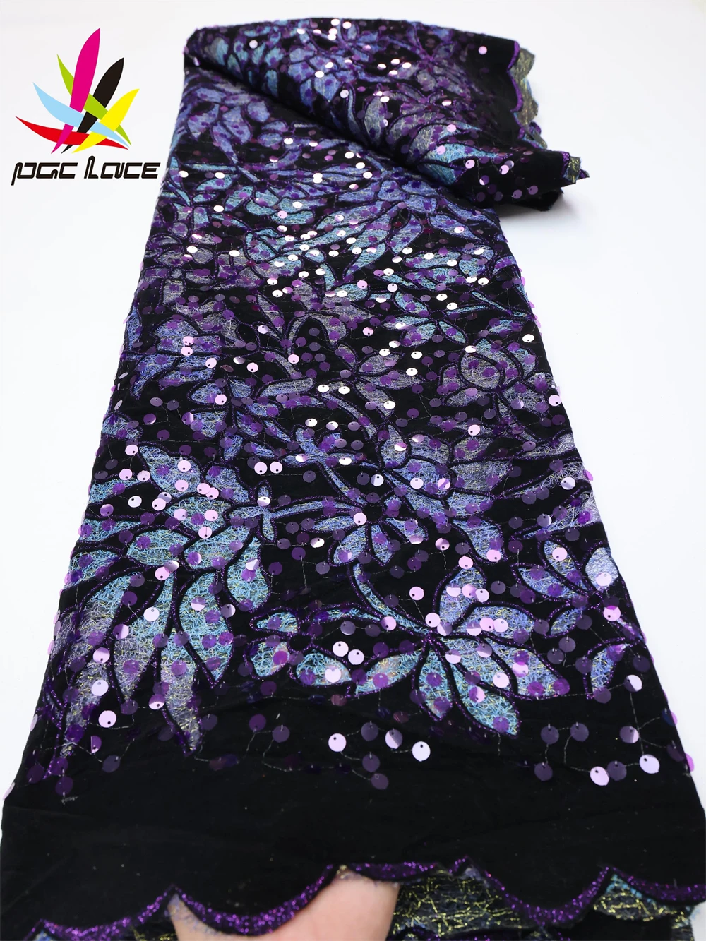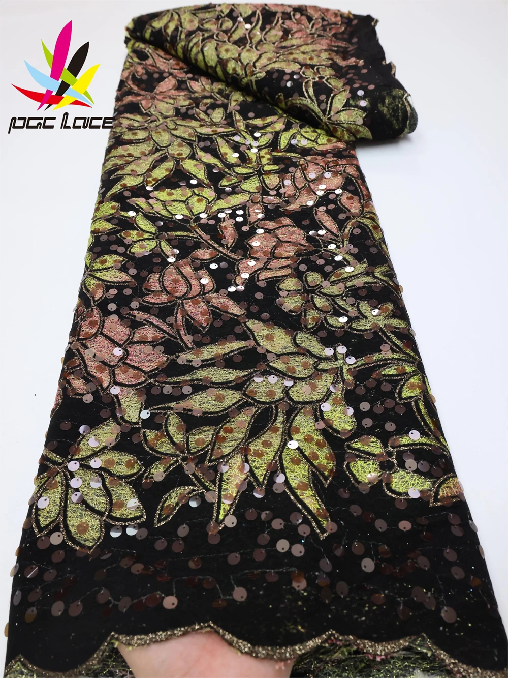 PGC африканская кружевная ткань 2021 высокое качество кружевной материал нигерийские французские пайетки кружевная ткань для вечерние платья YA4322B-5