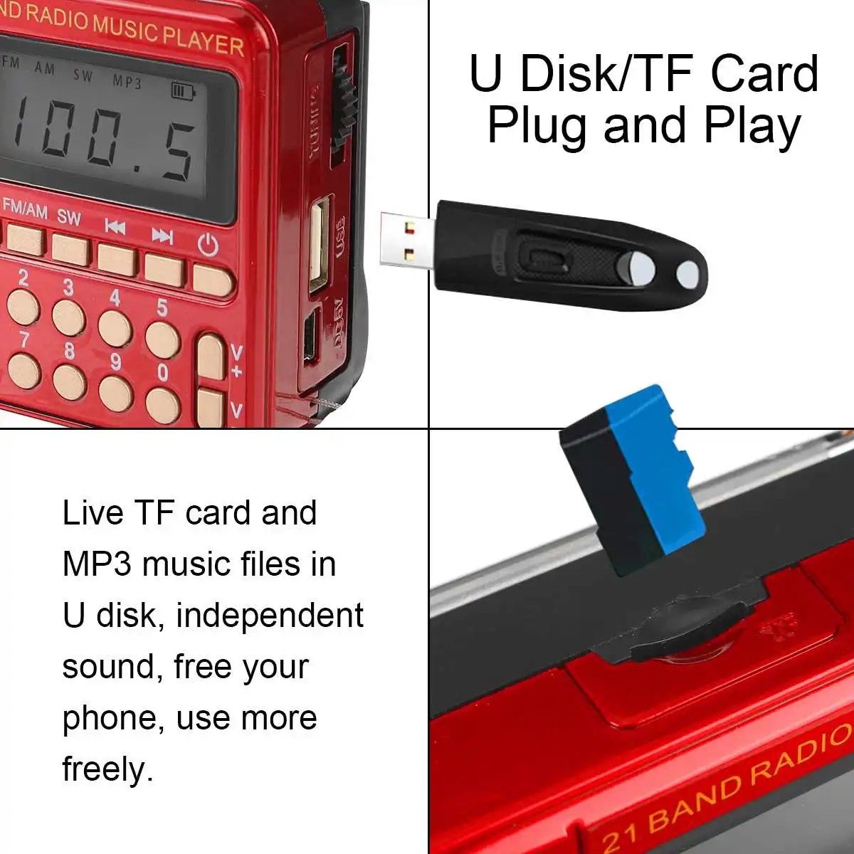 Особенности: -FM + AM + SW (18 диапазонов коротких волн). Всего 21 радиостанция. -Усовершенствованный цифровой дисплей настройки DSP. -Воспроизведение музыки с TF-карты/U-диска. -Программа выбора цифрового ключа. -Выключатель питания: Нажмите кнопку питания, чтобы включить и выключить устройство. -MP3: Нажмите, чтобы воспроизвести программу на TF-карте/U-диске, нажмите воспроизведение/пауза еще раз. -SW: Откройте антенну, нажмите, чтобы воспроизвести коротковолновые трансляции 1-18, а кнопки вверх и вниз-SW1-18 кнопок выбора коротковолновых трансляций. -FM/AM: Нажмите, чтобы воспроизвести FM1 (87,0-108,0 МГц), нажмите кнопку FM в режиме FM, чтобы выбрать радио FM2 campu (70-87 МГц), И снова коснитесь воспроизведения средневолнового вещания (522-1620 кГц). -Предыдущая песня: в режиме MP3 нажмите, чтобы воспроизвести Предыдущий трек TF-карты/U-диска, нажмите и удерживайте перемотку, в коротковолновом режиме SW1-18, нажмите, чтобы выбрать Последний короткий Диапазон волн. -Следующая песня: в режиме MP3 коснитесь, чтобы воспроизвести следующий трек TF-карты/U-диска, нажмите и удерживайте кнопку «быстро вперед», в коротковолновом режиме SW1-18, нажмите, чтобы выбрать следующий короткий диапазон волн. -Регулятор громкости: увеличение (в +) или уменьшение (В.-) громкости. -Клавиши с цифрами 0-9: введите номер в режиме MP3, чтобы выбрать трек, который вы хотите слушать (например, введите 28, чтобы выбрать 28-ю песню) -Колесо настройки: в режиме радио поверните кнопку настройки для прослушивания FM, средних и коротких волн. -USB: Вставьте USB-накопитель для воспроизведения музыки. -TF-карта: Вставьте TF-карту для воспроизведения музыки. -5 в постоянного тока: Подключите кабель для зарядки. Характеристики: Название: 21-полосный радиомузыкальный плеер Цвет: черный, красный Материал: пластик Номинальная мощность: 3 Вт Входная мощность: 5 В постоянного тока, ма Аккумулятор: 3,7 в/1200 мАч Метод радионастройки: цифровой дисплей Размер продукта: 11*7*3 см/4,33*2,76 * 1.18in Посылка: 13*8*4 см/5,12*3,15 * 1.57in Вес: 231 г Посылка 1 x Радио 1 x USB-кабель для зарядки 1 х батарея 1 х Руководство Примечание: 1. Возможны отклонения на 0,5-1 см из-за ручного измерения. 2. Из-за разницы светильник щении и экранах цвет изделия может немного отличаться от изображения. |