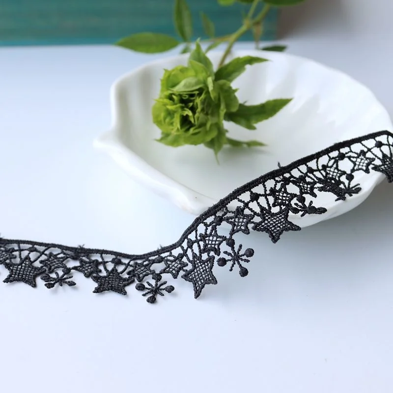 2 см в ширину Изысканная белая черная полиэфирная вышитая звезда снежинки кружевная лента «сделай сам» одежда швейный Материал Рождественский Декор