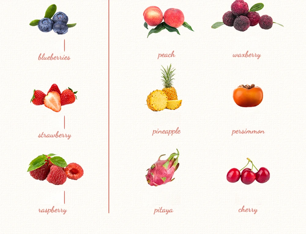 Модели SY: яблоко, груша, персик, ананас, фрукты дракона, апельсин, личи, бэйберри, хурма, вишня.