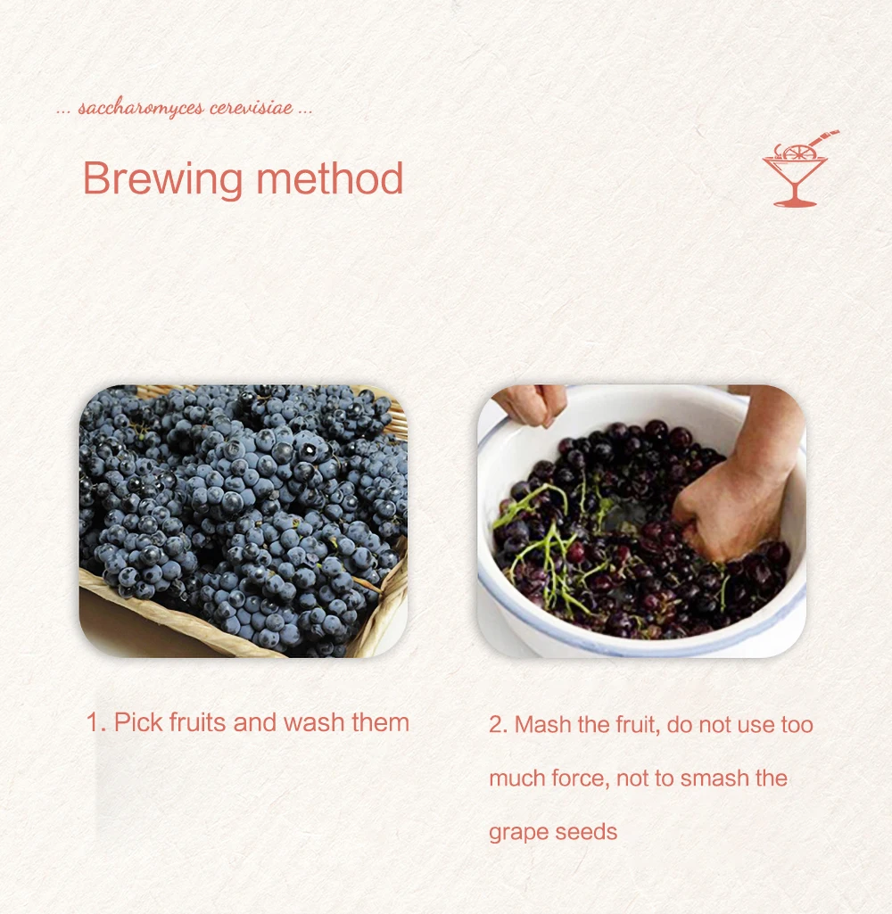 Безопасно для использования: дрожжи имеют сертификацию SC пищевых стандартов. С вином специальные дрожжи, вы можете заваривать питательное и здоровое вино.