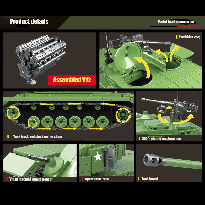 Гуло гуло 1013pcsMilitary M26 Pershing Heavy Tank Building BlocksCity US Немецкий тигр 131 танк Кирпичи полиция детские игрушки подарки