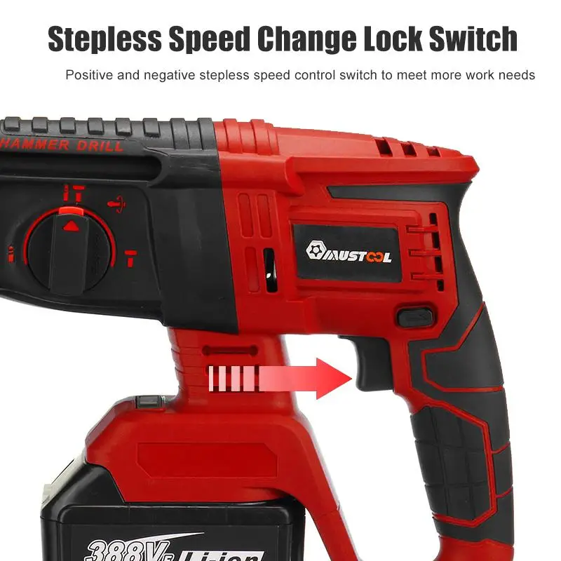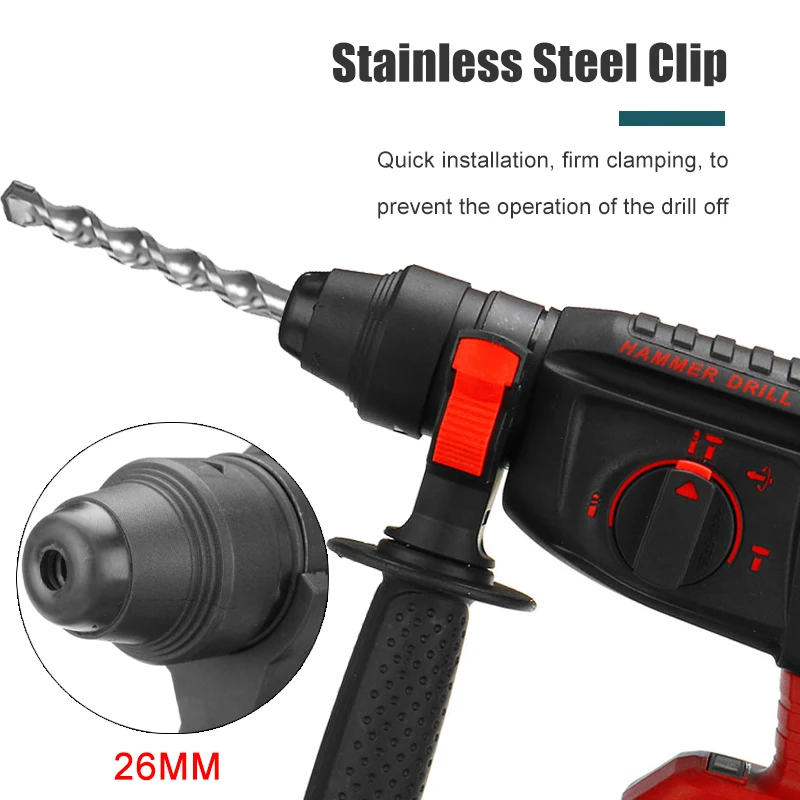 Electric hammer mode:Higher drilling efficiency than AC electric hammer