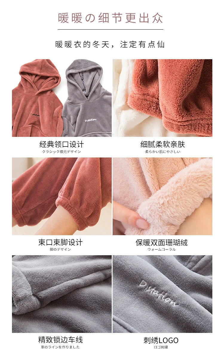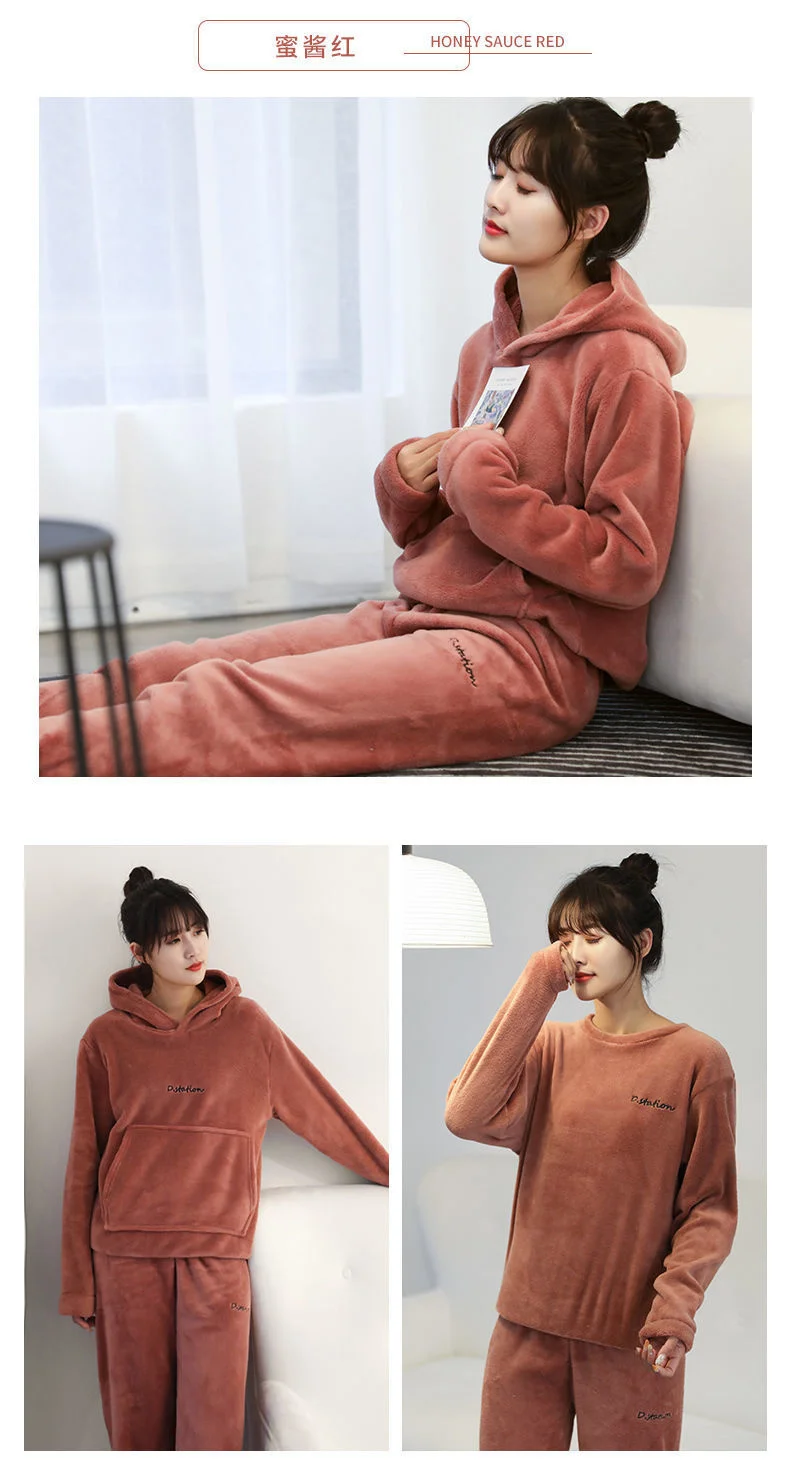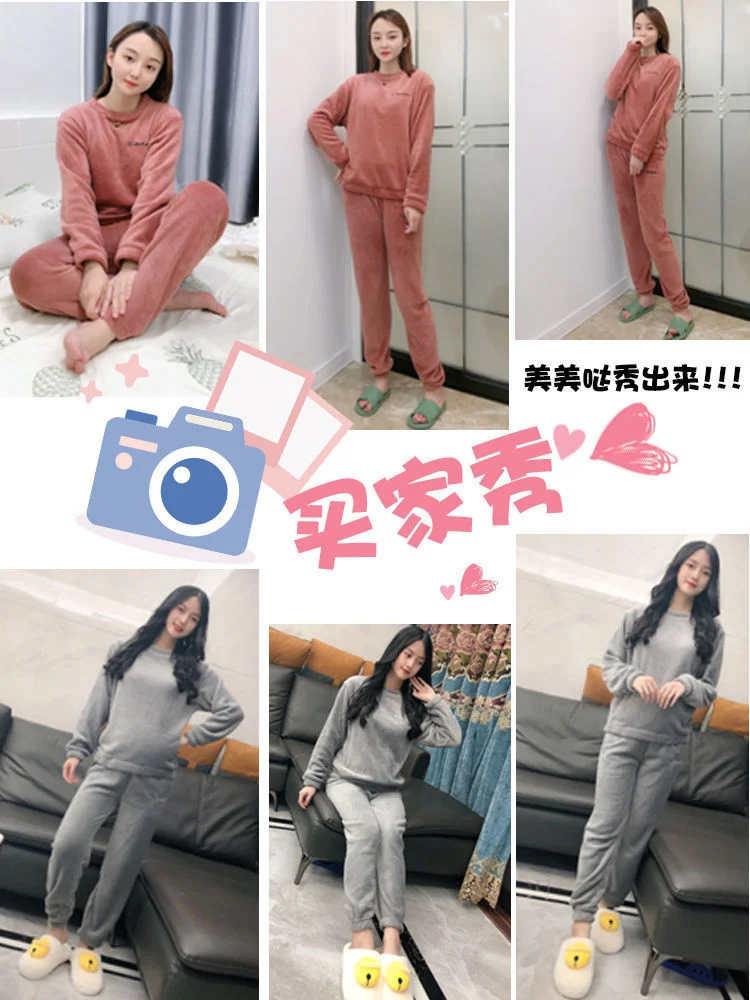 [Быстрый возврат] теплый комплект со штанами, кашемировая Пижама кораллового цвета, осенняя женская одежда на весну и осень, утепленная кашемировая Домашняя одежда с длинными рукавами, зимняя женская пижама