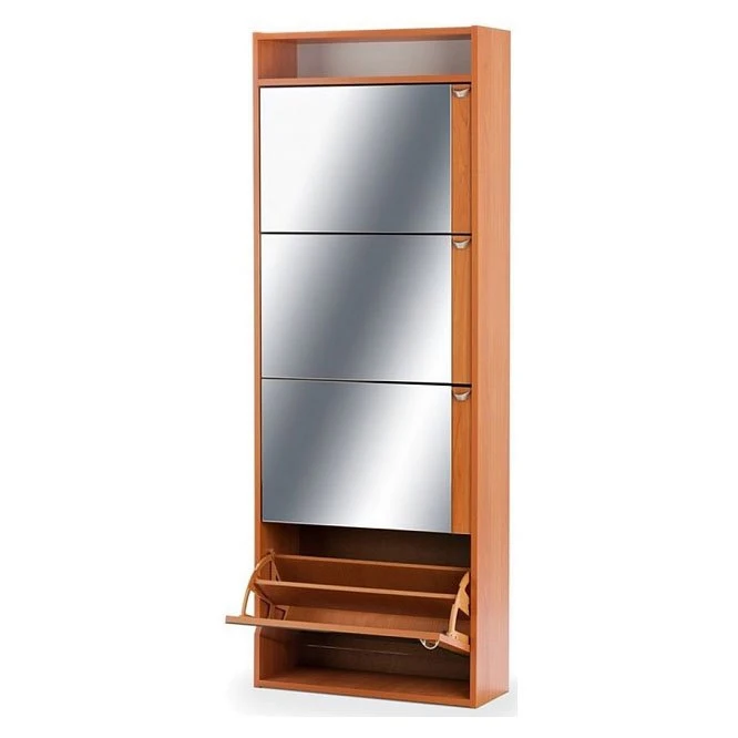 Для обуви. Тип дверок откидные. Количество отделений (секций) для обуви 4. Материал каркаса ЛДСП. Требуется сборка. Размеры 1596 x 225 x 604 мм, вес 35 кг. Передняя часть зеркало.