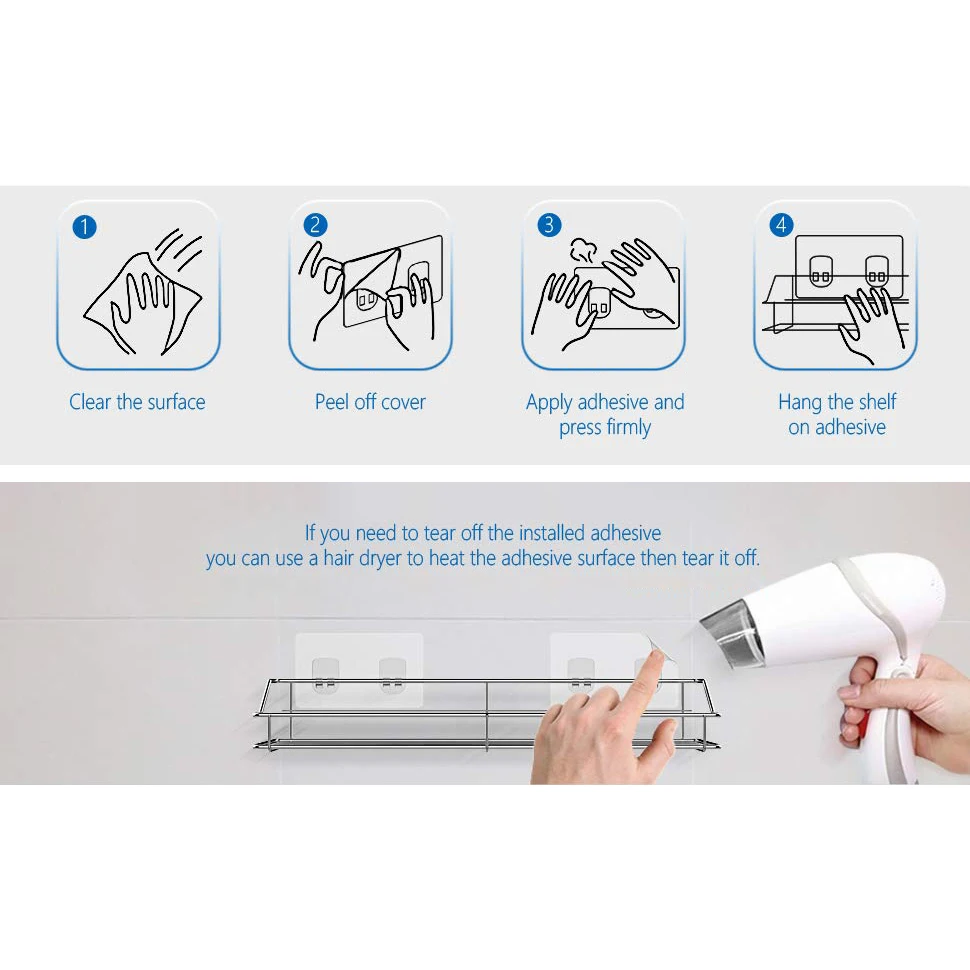 Клей может выдерживать до 30 фунтов и трудно отклеивать, так что вы можете положить тяжелые вещи, такие как шампунь или приправа на полке