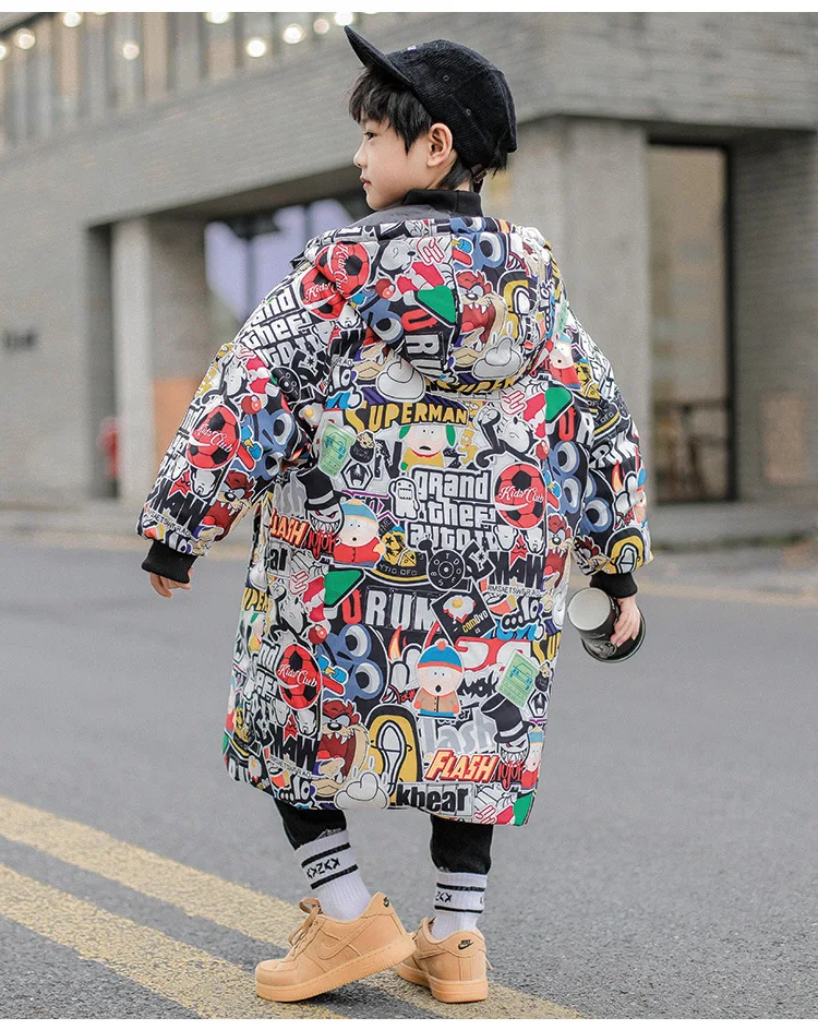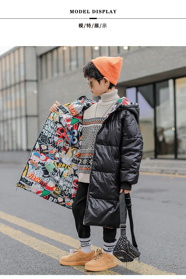 2022 зимнее детское модное длинное пальто, двухстороннее пуховое пальто для мальчиков, детская теплая утепленная куртка с капюшоном Parker, 8, 10, 12, 14 лет