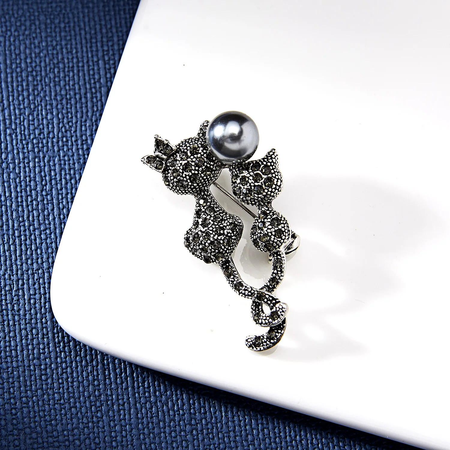 Rinhoo мультфильм животное броши-кошки забавные Винтаж Стразы, рубашка с рисунком «кошка» значки сумка Симпатичный значок маленький котенок мяу вечерние ювелирные изделия