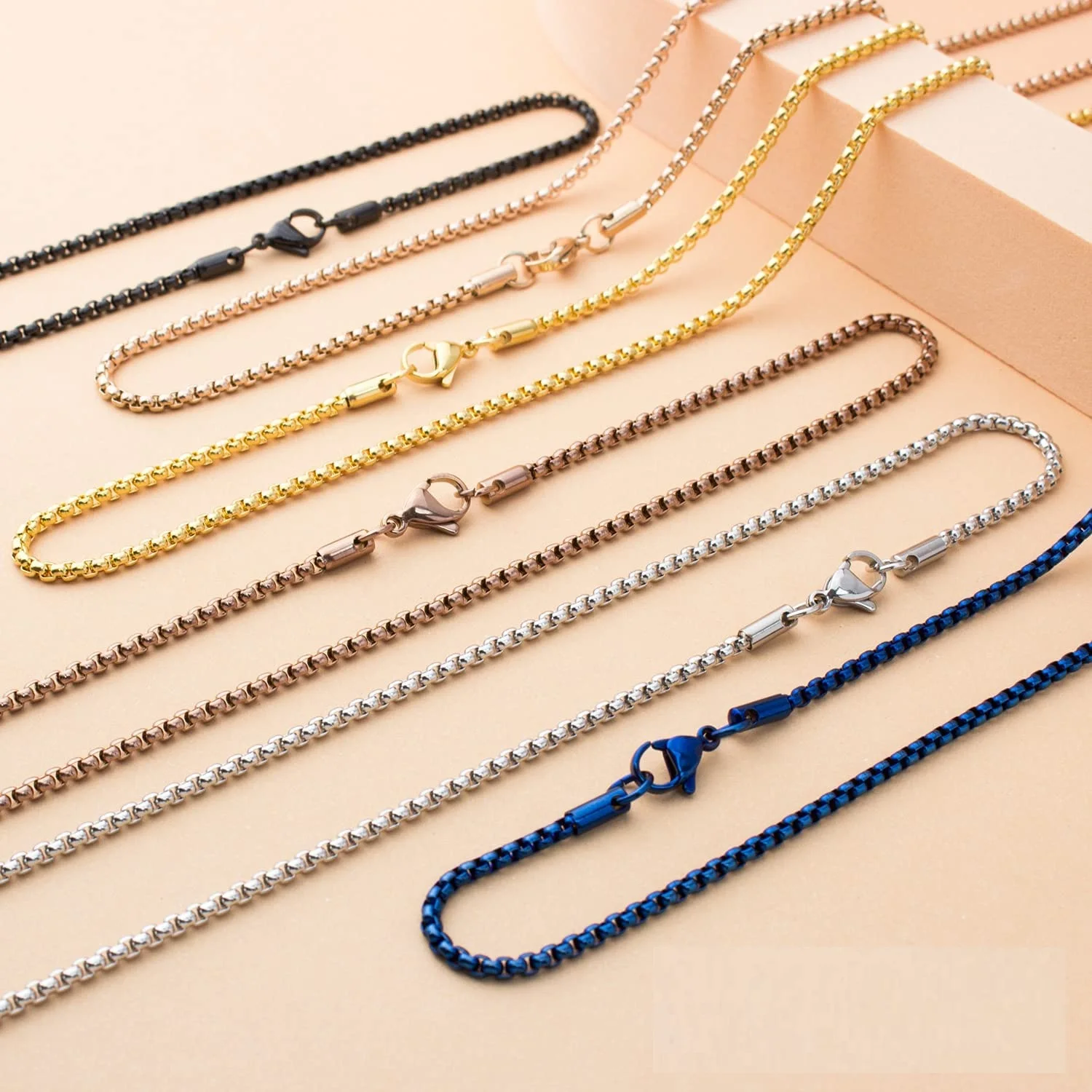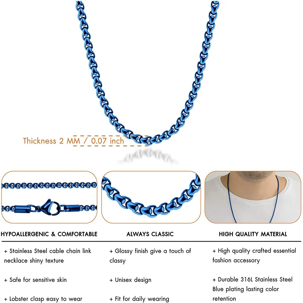 Ожерелье с круглой цепочкой синего цвета