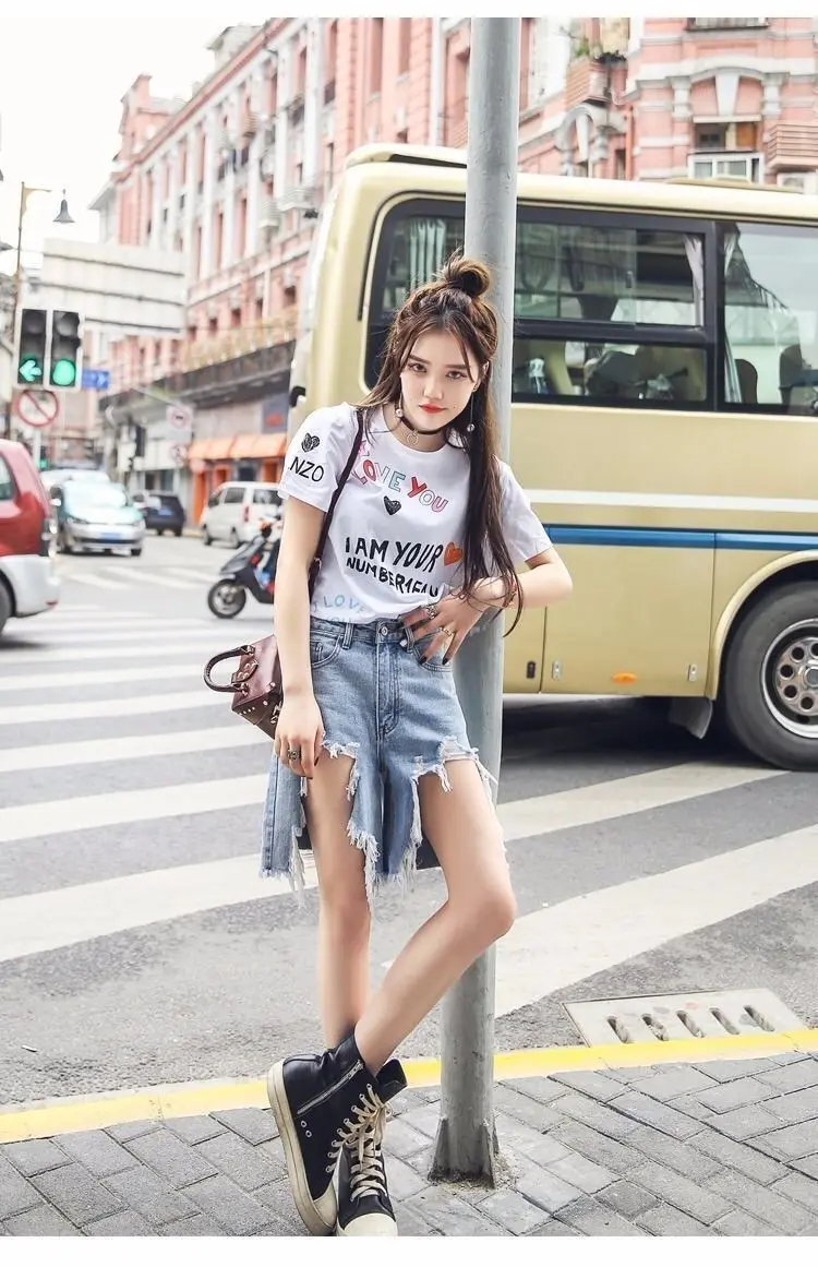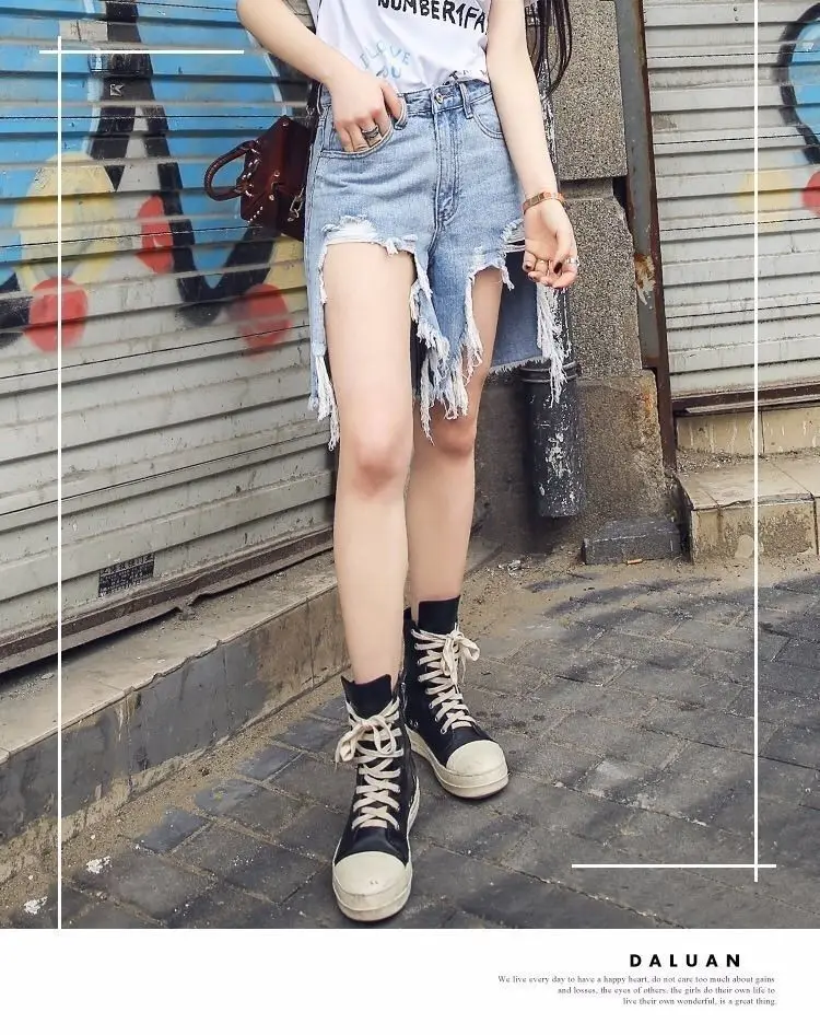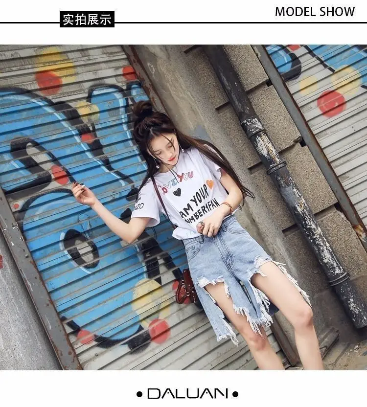 Летние женские рваные уличные джинсовые штаны с бахромой, Harajuku, светильник, синие женские короткие джинсы, штаны в стиле панк, хип-хоп, корейская модная одежда