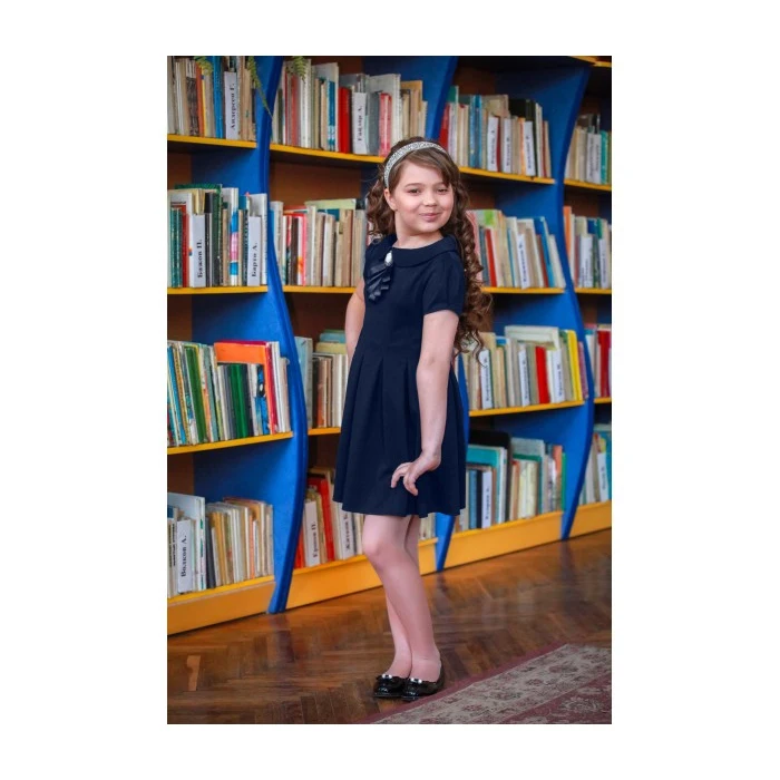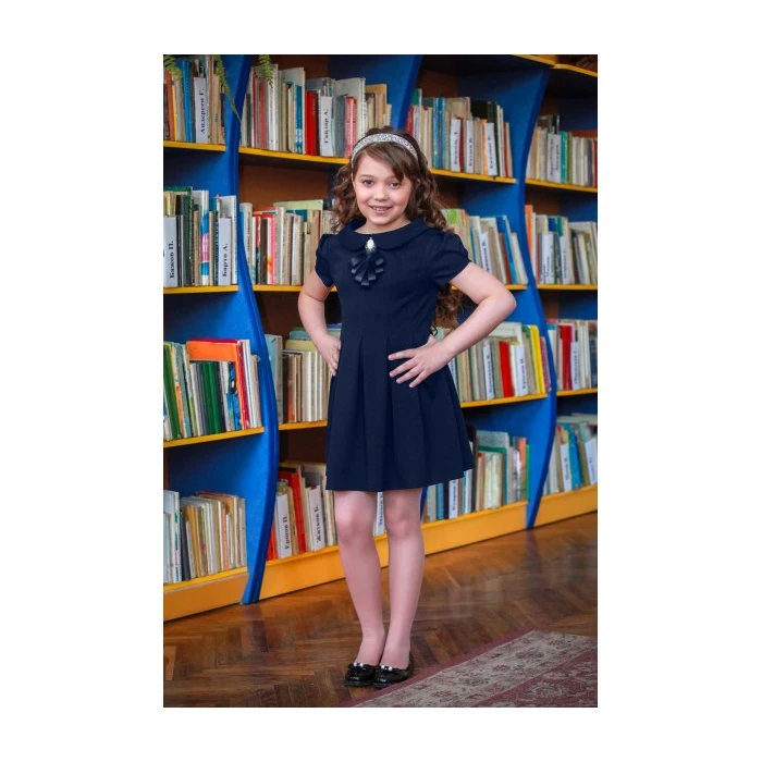Необыкновенно обаятельное школьное платье. Ткань: трикотажное полотно "Лакоста". Состав: 40% хлопок, 60% полиэстер. Размер: 32. Рост: 134 см.
