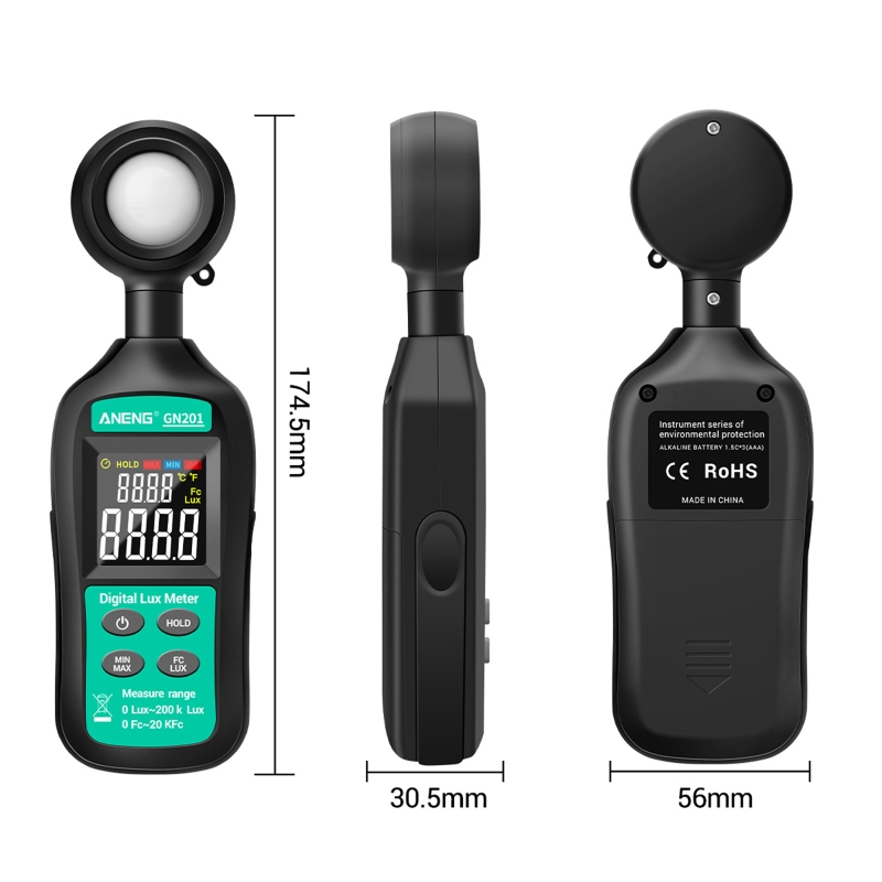 Цифровой Измеритель света GN201 Luxmeter 200K Lux, портативный фотометр