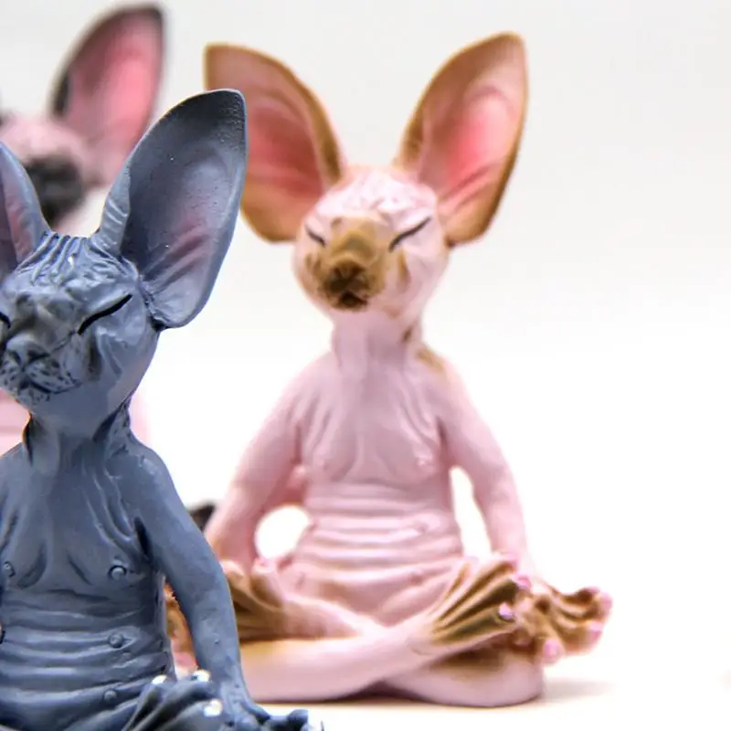Медитация кошки: Эта медитирующая статуя кота имеет приятный абстрактный дизайн. Он предоставляет зрителям анонимное обращение и молитву, чтобы сделать его более привлекательным для более широкой аудитории. Хорошее украшение для любителей йоги.