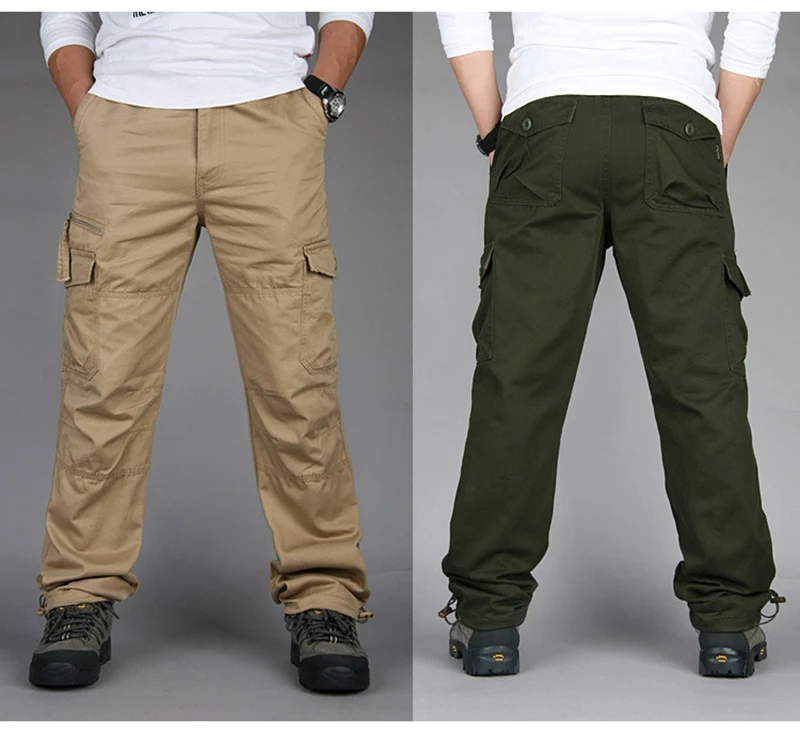 Мужские повседневные брюки-карго с несколькими карманами, тактические армейские прямые свободные брюки, мужские комбинезоны с карманами на молнии, сезонные брюки