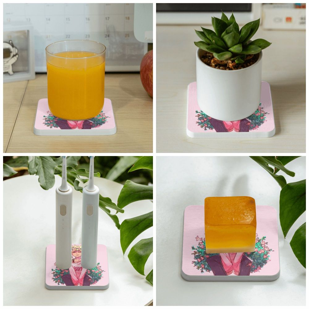 Each coaster is 4x4" (10 x 10 cm). Round shape is Diameter 10cm.