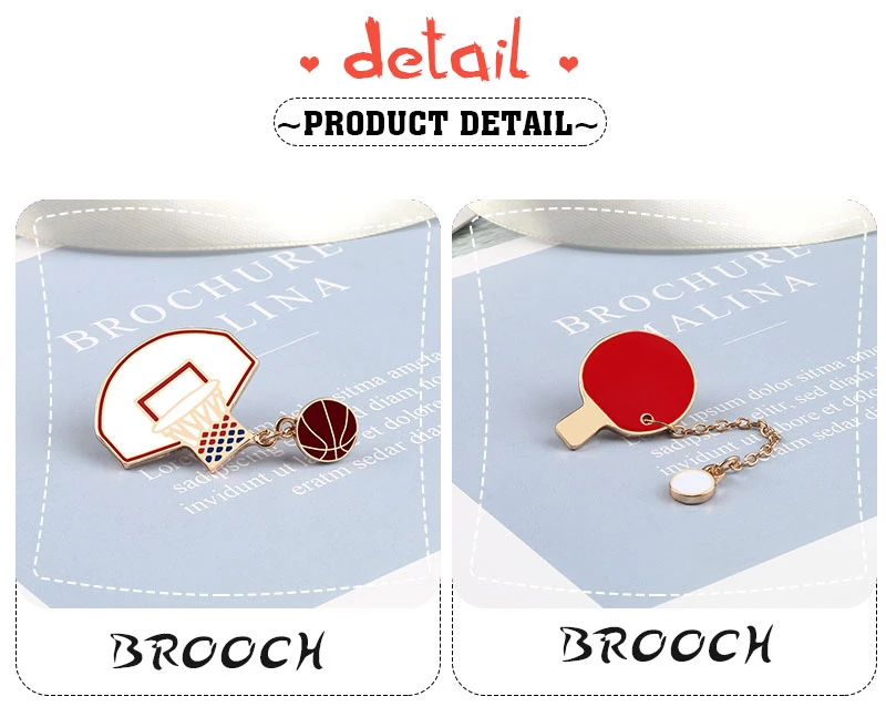 Спортивная металлическая эмалированная булавка для настольного тенниса, бадминтона, баскетбольная брошь, сумка для женщин, свитера, рубашка, воротник, цепь, отворот, значки, ювелирные изделия