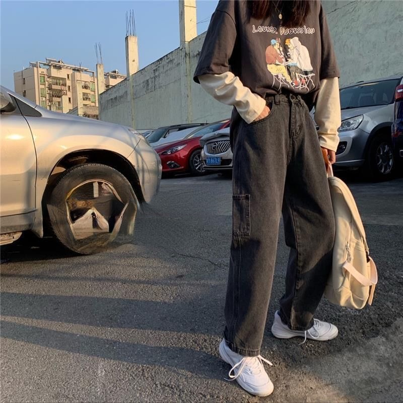Рваные прямые мешковатые джинсы женские повседневные уличные штаны бойфренды с
