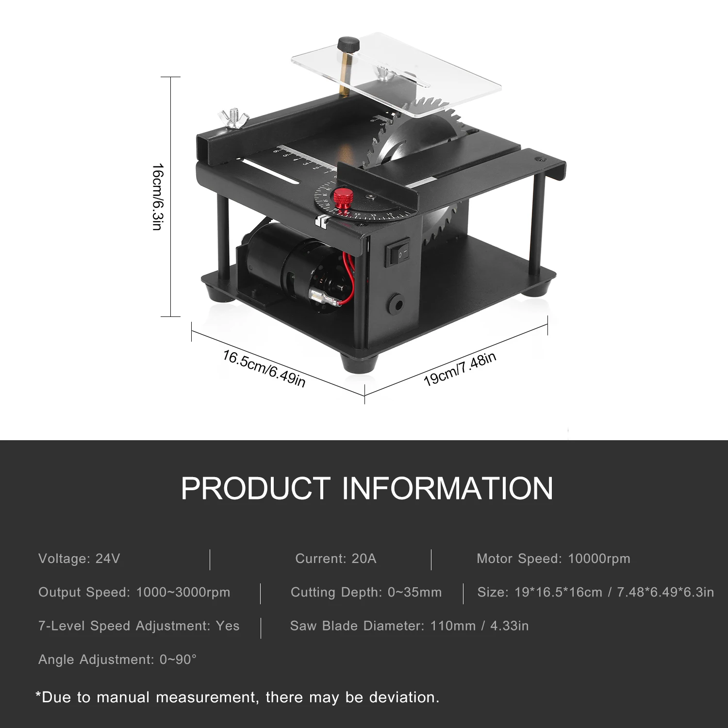 Компактный размер-- Таблица размеров пилы 19*16,5*10 см портативный размер и вес 67,93 унций, для легкой транспортировки и удобного хранения дома.