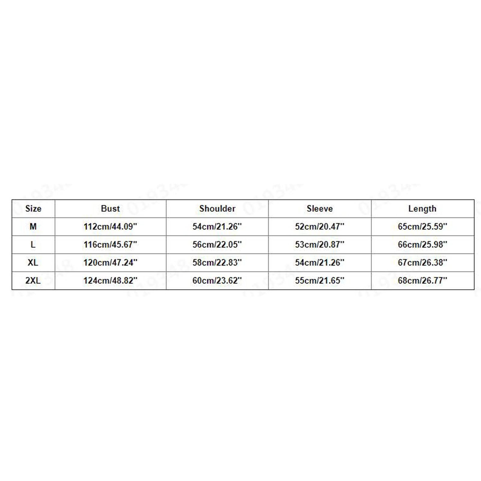 | Размер: 2XL | Обхват груди: 124 см/48,82 дюйма | Плечо: 60 см/23,62'' | Рукав: 55 см/21,65 дюйма | Длина: 68 см/26,77 дюйма |