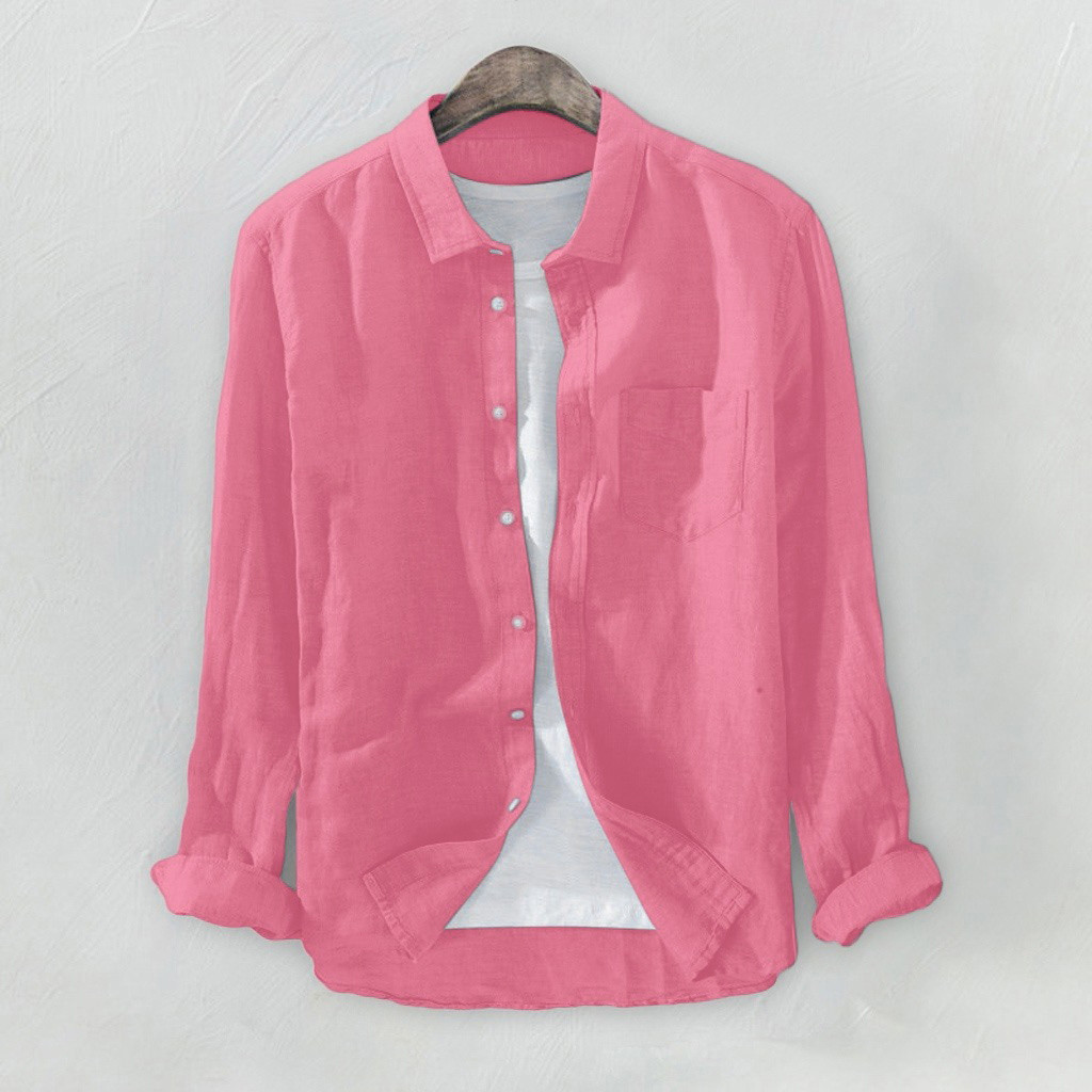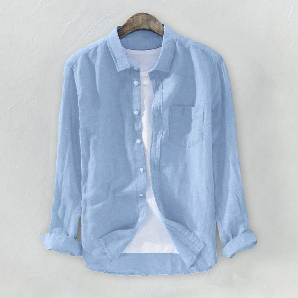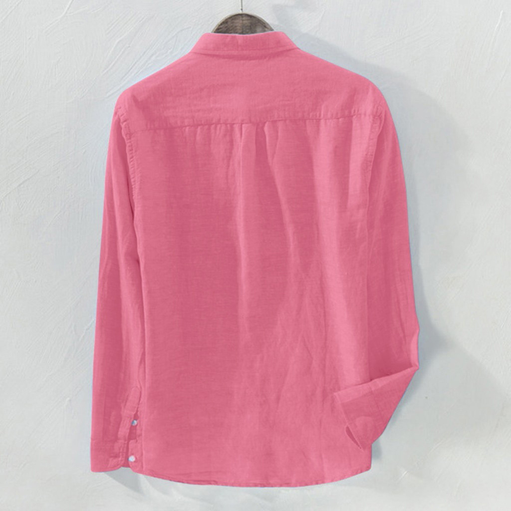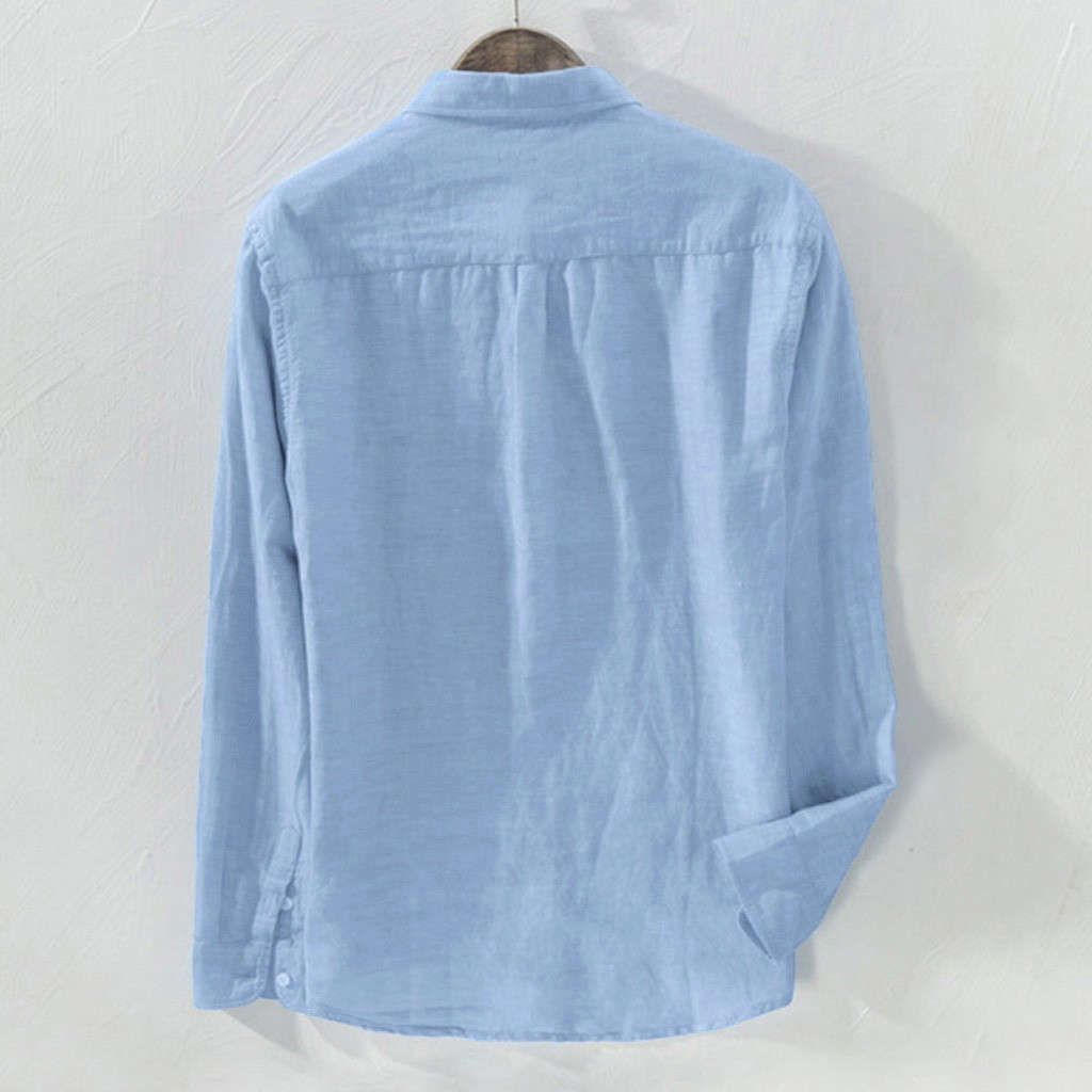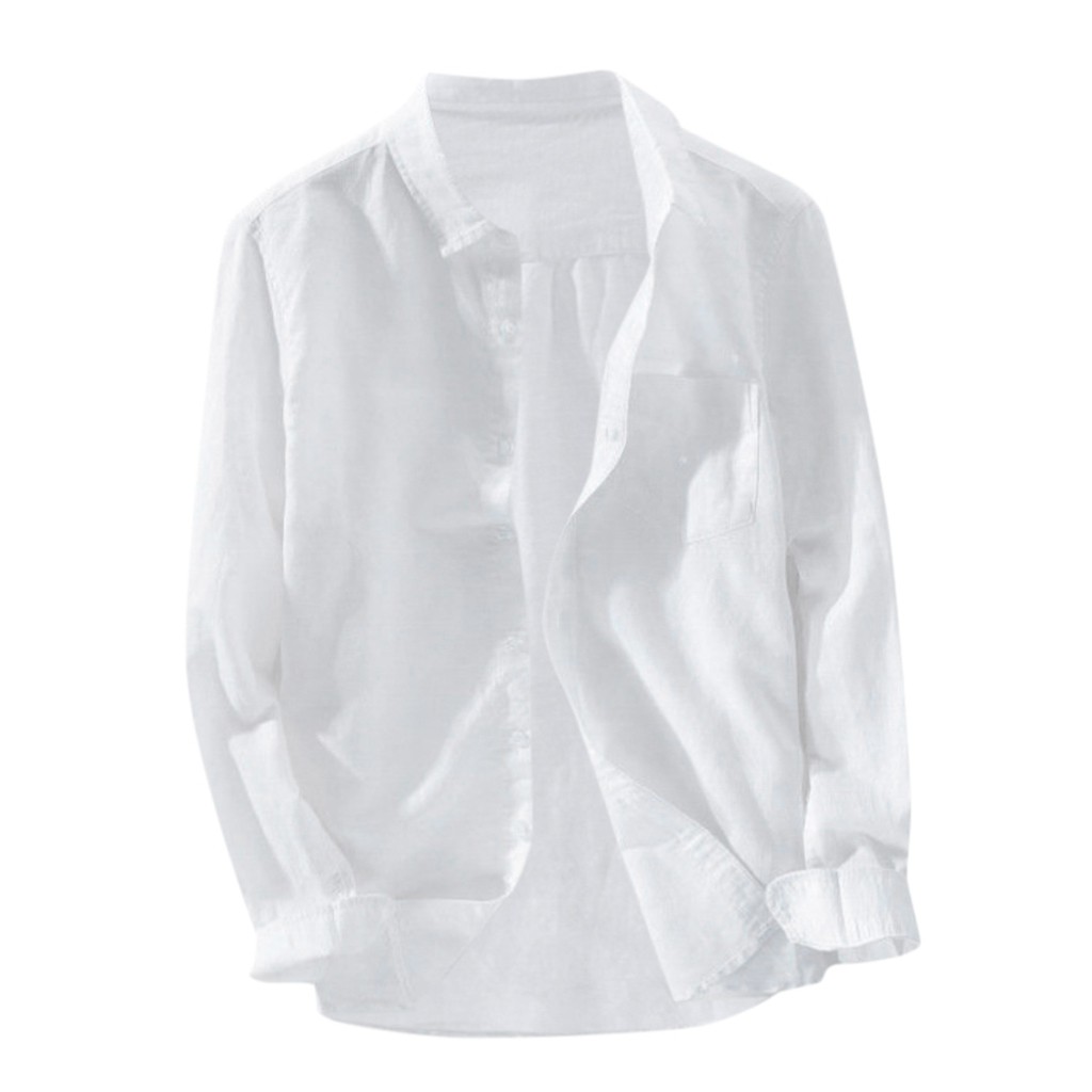 Мужские Мешковатые однотонные хлопковые льняные футболки с длинными рукавами и карманами на пуговицах размера плюс