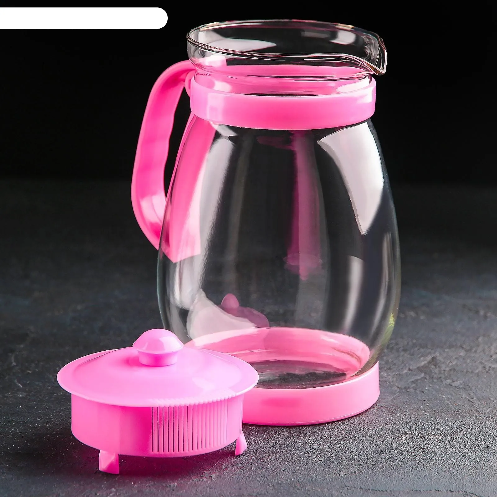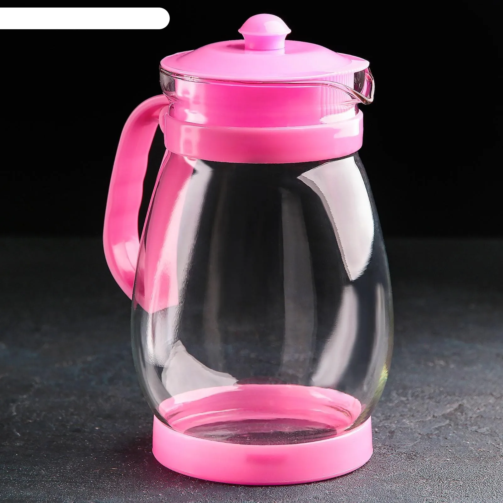 Стеклянный кувшин с пластмассовой крышкой, объем 1800 мл. Можно мыть в посудомоечной машине. Стекло выдерживает сильные перепады температуры жидкости. Габаритные размеры 13.5х16х22.5 см.
