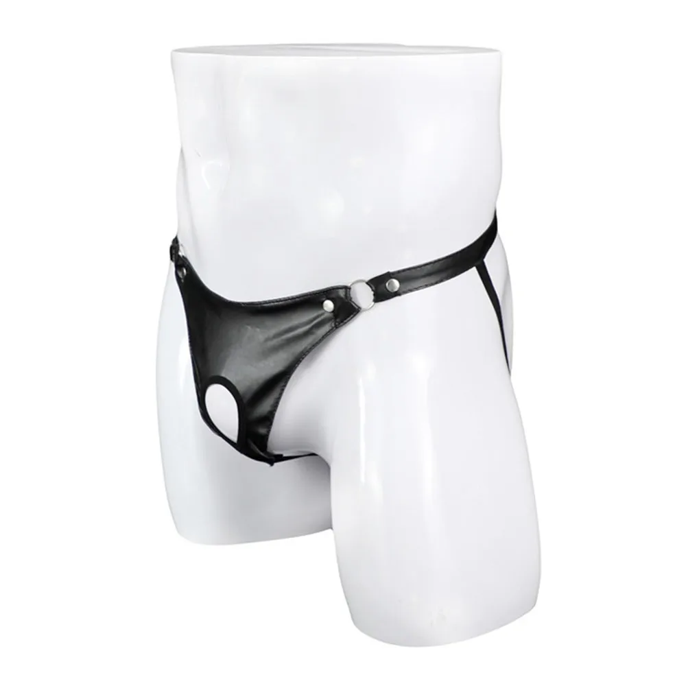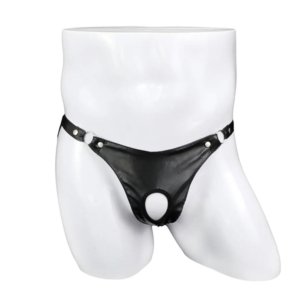 Мужские кожаные стринги с отверстием для пениса, сексуальное нижнее белье с металлическим кольцом, эротическое нижнее белье для мужчин