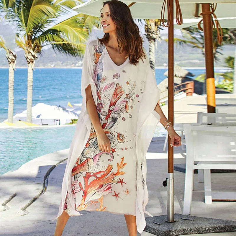 Пляжное кимоно из шифона с цветочным принтом Fitshinling накидка на бикини одежда для