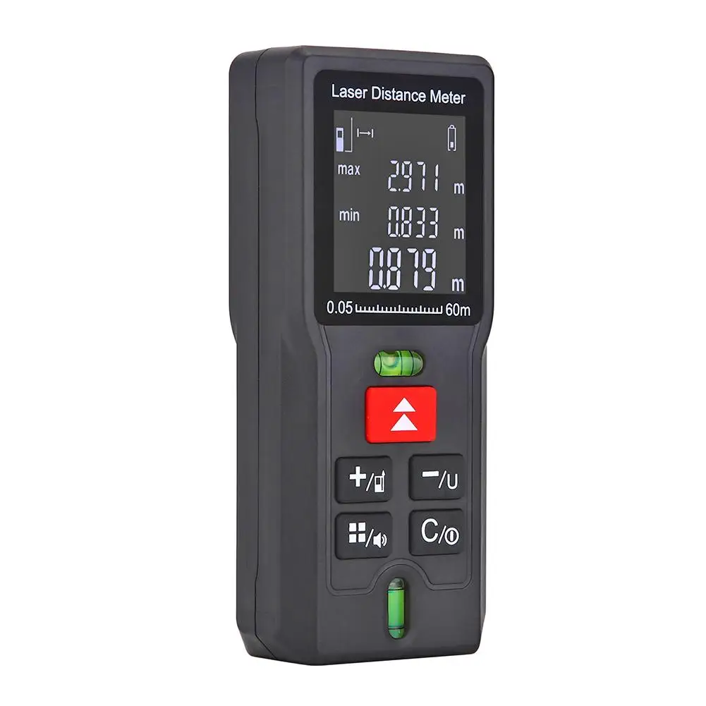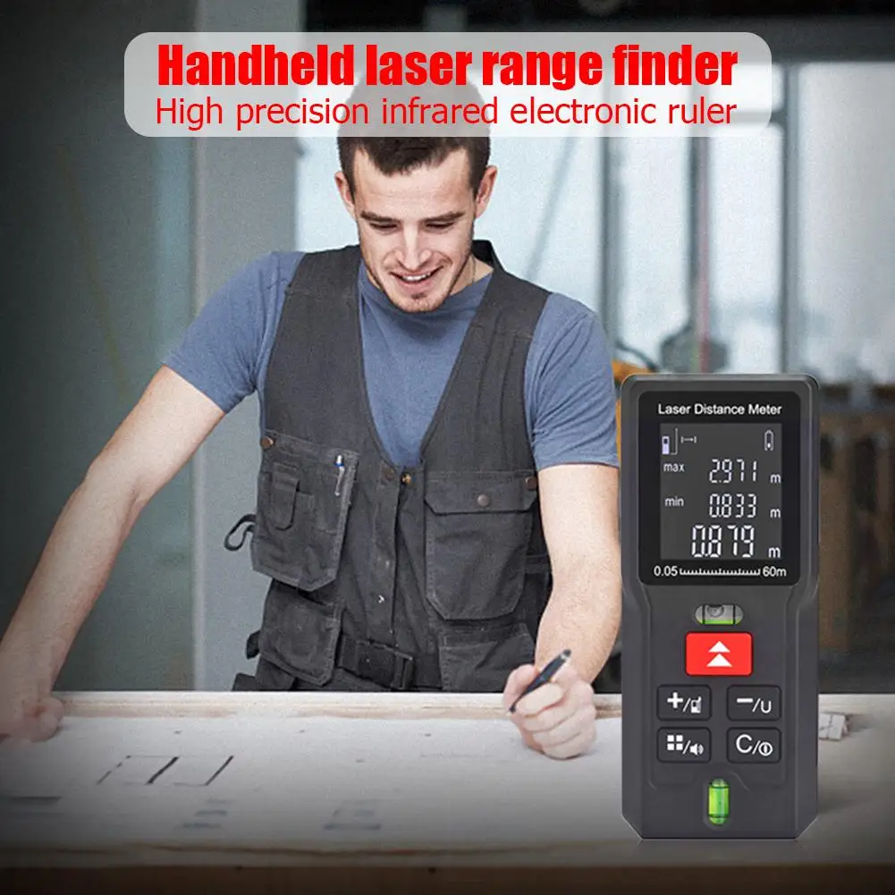 Спецификация: Материал: АБС-пластик Диапазон измерения: 0,05-40/60/80/100 м Точность измерения: ± 2 мм Измерение площади: Поддержка Измерение громкости: Поддержка Измерение предложения по пифагору: Поддержка Хранение данных: до 20 групп Батарея: 1,5 V 2 х ААА(Не входит в комплект) Рабочая температура: 0-40 ℃ Температура хранения:-20-60 ℃ Размер: 110*46*25 мм/4,33*1,81 * 0.98in Вес: 72 г Примечание: 1. Из-за различных настроек монитора и светильник эффект, фактический цвет элемента может быть s светильник ly отличается от цвета, представленного на снимках. Спасибо! 2. Возможны отклонения в 1-3 мм вследствие измерений вручную. 1 X лазерный дальномер