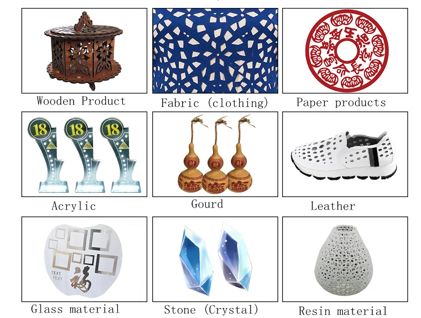 Дерево, бамбук, нефрит, мрамор, органическое стекло, хрусталь, пластик, одежда, бумага, кожа, Пенелопа, резина, керамика, стекло, резка текстиля, промышленная прототипирование, Промышленная маркировка, вывеска, маркировка медицинских частей, Аэрокосмическое, архитектурное моделирование, специальная реклама, изготовление пластмасс, флексо, точка покупки, резиновые марки, Обрамление картин, Изготовление подарков, штрих-кодирование, гравировка, нарезка прокладок, пазлы, cabinetry, награды и признание, персонализированные ручки, дверные тяги, вырезание шаблонов прокрутки, игры и игрушки, пальцы суставов, вставки и накладки, коллекционные весла, музыкальные коробки, переключатель на светильник, коробки для ювелирных изделий, маркировка деталей, шаблоны маршрутизатора, Настольные наборы, скрап заказ, фотоальбомы, ювелирные изделия, ремесла, итальянские амулеты.