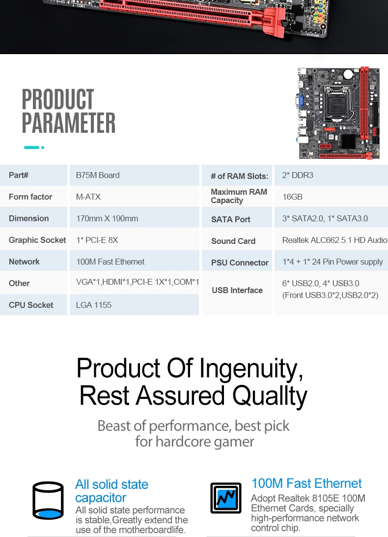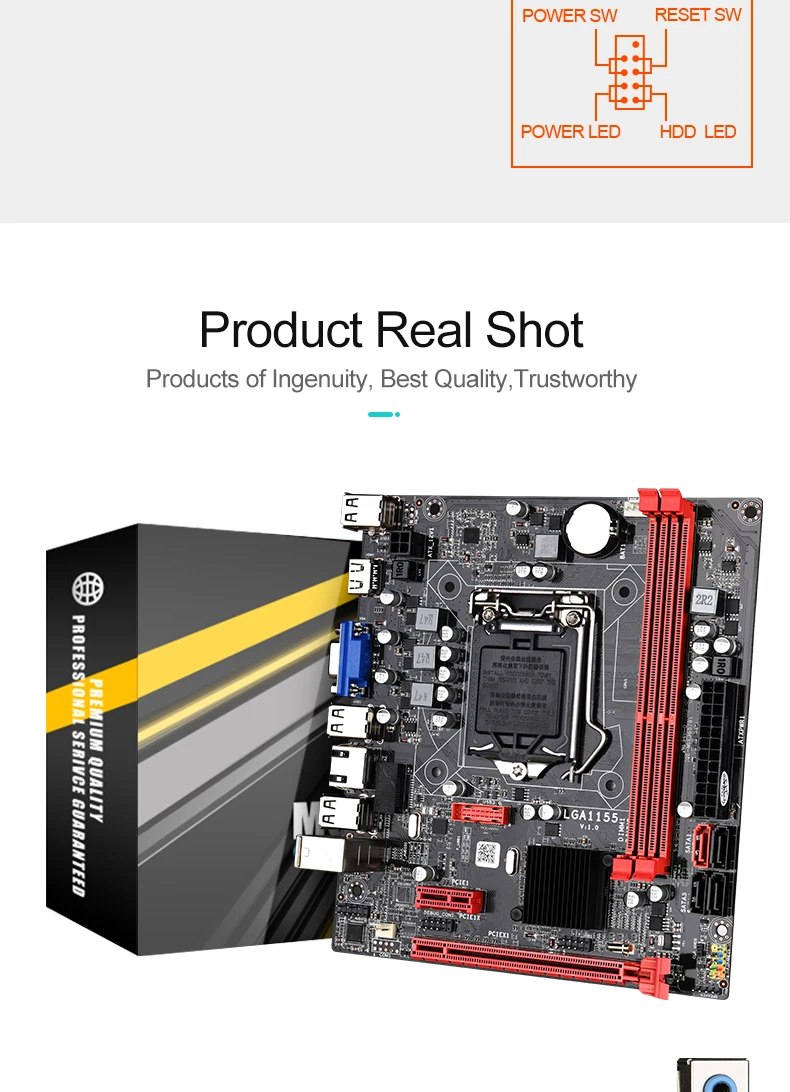 Из-за различных производственных партий могут быть некоторые различия между изображениями, которые вы видите, и продуктами, которые вы получаете, например, упаковочная коробка, цвет DIMM слотов, SATA портов, PCI или PCI-E слоты и другие порты, при условии изменения, без уведомления. Одна вещь, конечно, заключается в том, что мы никогда не поставим под вопрос качество продукции.