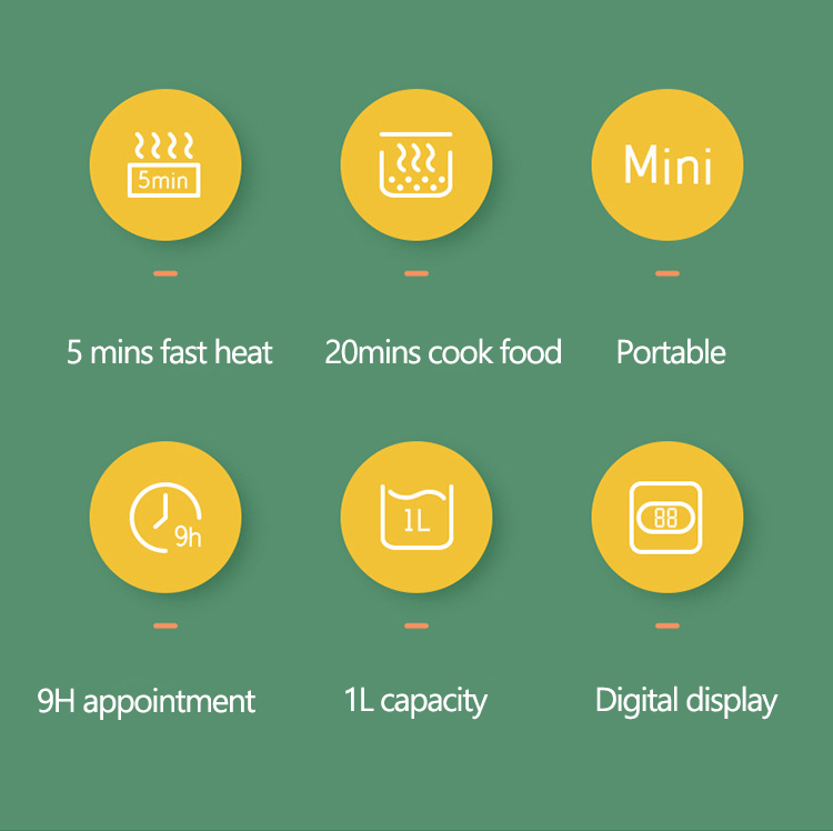 220 В Электрический Ланч-бокс, умная рисоварка, портативная жаровня, многофункциональная плита, керамический вкладыш, без воды, с цифровым дисплеем