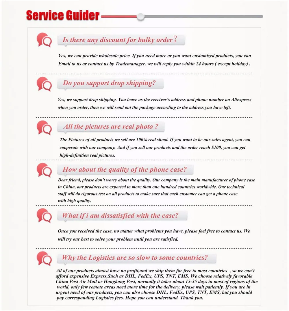 Наши продукты были дважды проверены и дважды упакованы перед отправкой. Если вы обнаружите какие-либо аномалии после получения продукта, такие как деформация, повреждение, дефект или непригодность для вашего мобильный телефон, пожалуйста, сначала свяжитесь с нами, затем Поднимите спор и оставьте отрицательный отзывы. Мы дадим вам Отзывы и своевременно примем меры