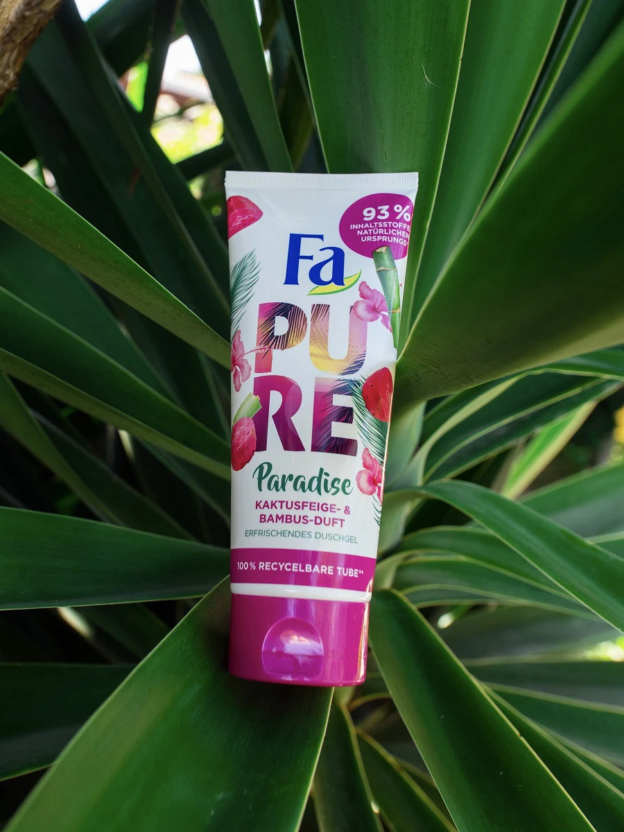 FA shower gel pure paradise with a refreshing aroma of cactus and bamboo. Pamper your feelings with exotic fragrances inspired by ingredients from tropical islands, along with FA. In addition to the tropical attractive fragrance, the composition of this shower gel consists of 93% ingredients of natural origin. Give yourself a fantastic enjoyment every day while taking care of the skin and the environment! Without parabens, mineral oils, pH-neutral to the skin, dermatologically tested, biodegradable ingredients, skin protection from drying.