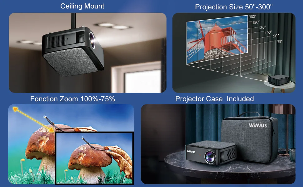 【Профессиональная поддержка и гарантия 3 года 】 wimius работает в области проекторов более 10 лет. Все вопросы получат профессиональные ответы в течение 24 часов в рабочие дни. Кроме того, мы покрываем 3 года гарантии, включая половину года бесплатного возврата. По любым вопросам, напишите нам в любое время.