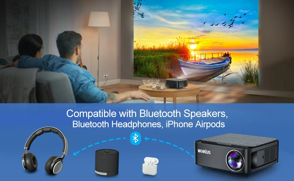 Этот проектор 1080P не только подходит для использования в помещении, но также используется для съемки фильмов на заднем дворе с друзьями. Это принесет счастье, где бы вы ни находились.