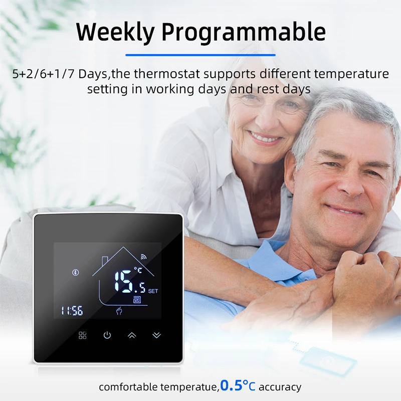 ВWifi термостатМожет работать сУмная жизньИTuya SmartПриложение. И совместим сФункция Bluetooth, Только вы откроете bluetooth на своем телефоне, он быстро подключится.