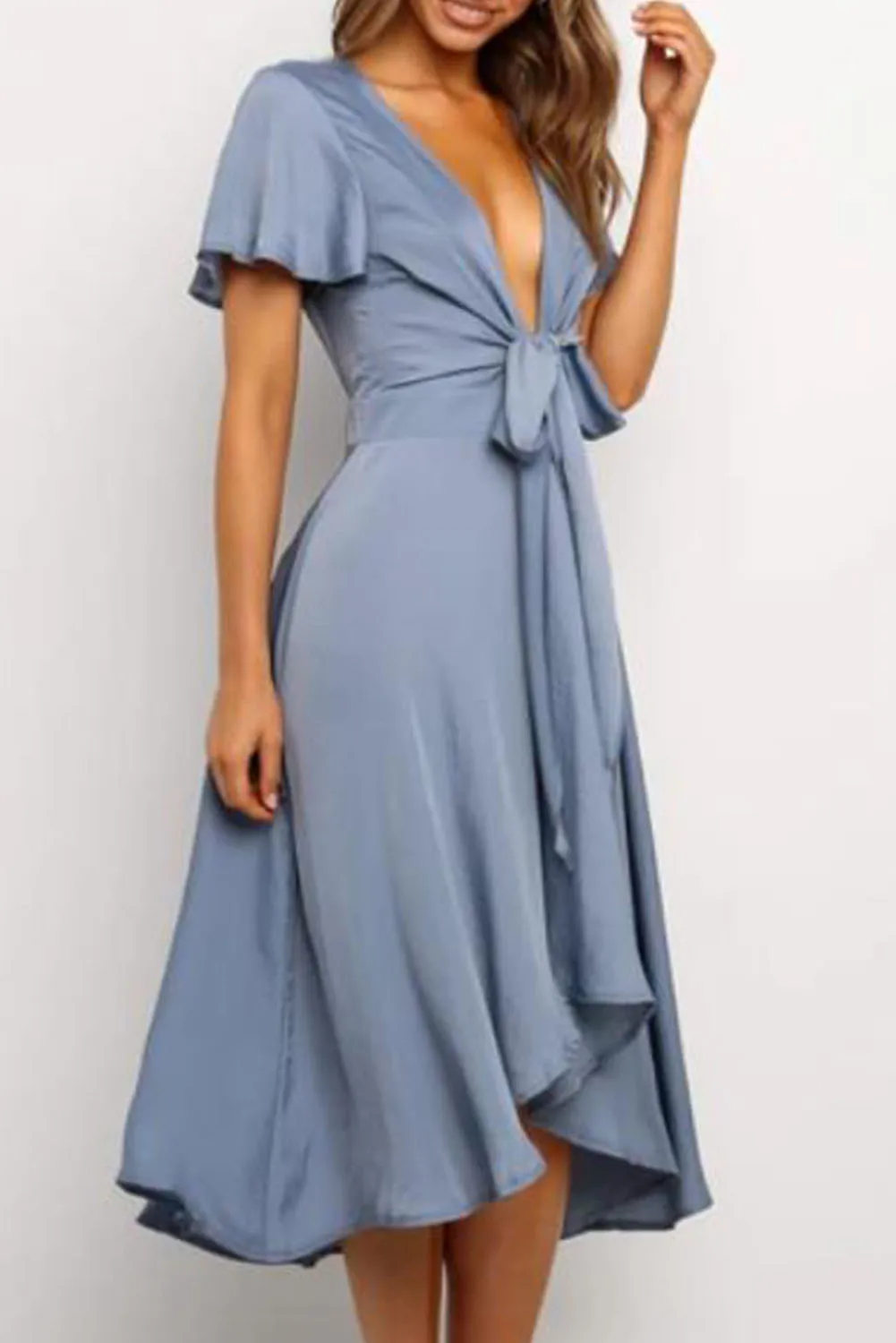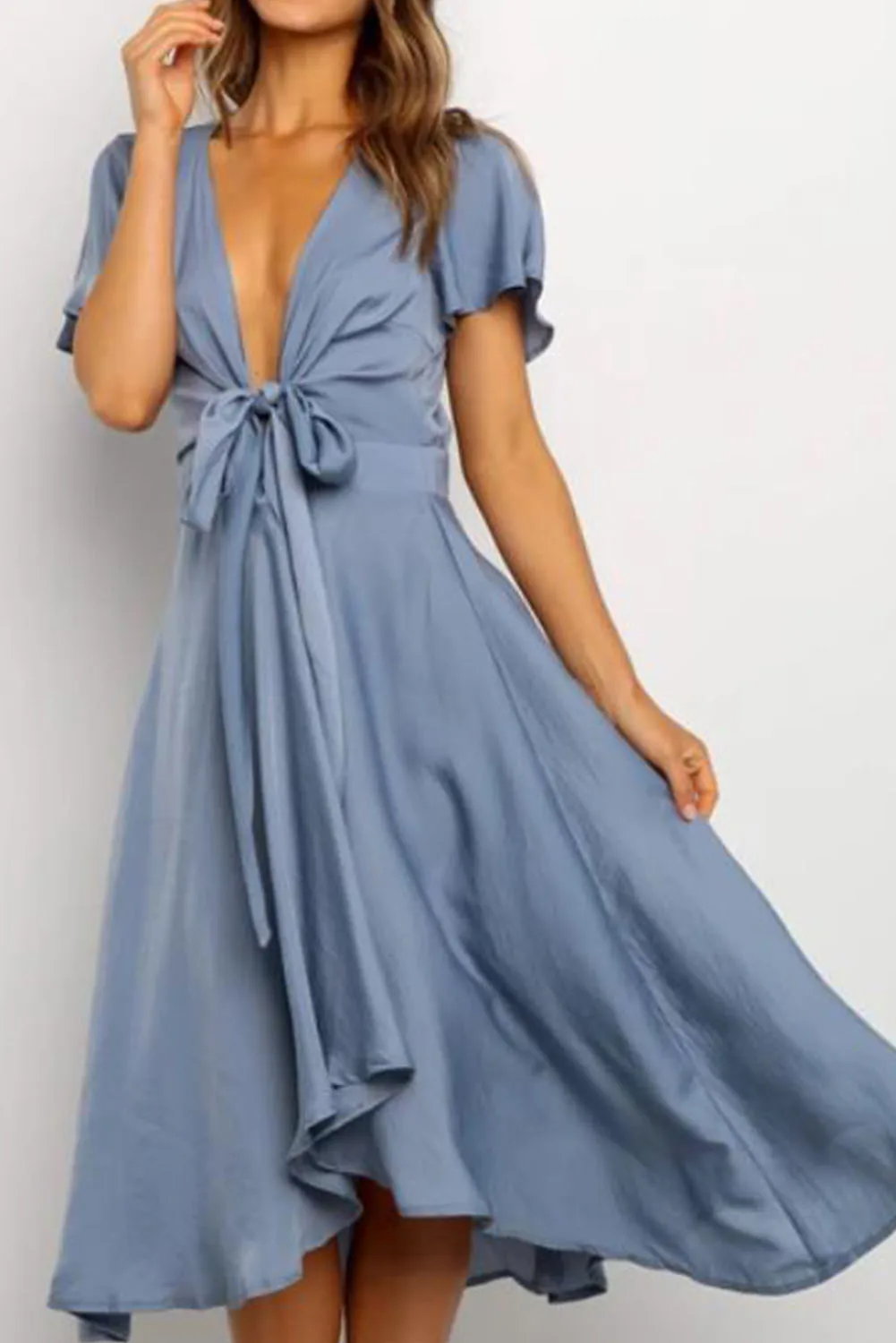 Зеленое/синее платье миди с глубоким v-образным вырезом, рукавами-крылышками и высокой талией, женское милое ТРАПЕЦИЕВИДНОЕ ПЛАТЬЕ средней длины, Вечерние Повседневные платья для работы