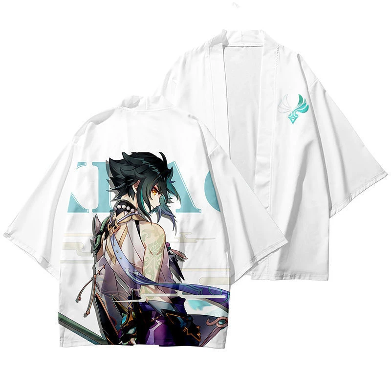 Японское кимоно Genshin Impact Xiao Haori Yukata для костюмированной вечеринки для женщин и мужчин, модное летнее кимоно с коротким рукавом, рубашки, уличная одежда