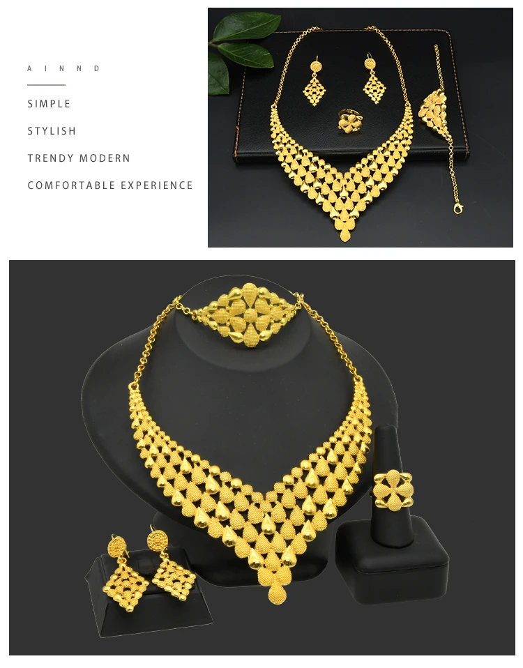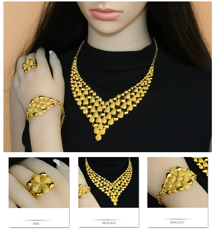 Дубай Золотой Цвет Ювелирные наборы для женщин Африканское ожерелье серьги браслет кольца набор индийская свадьба ювелирные изделия аксессуары